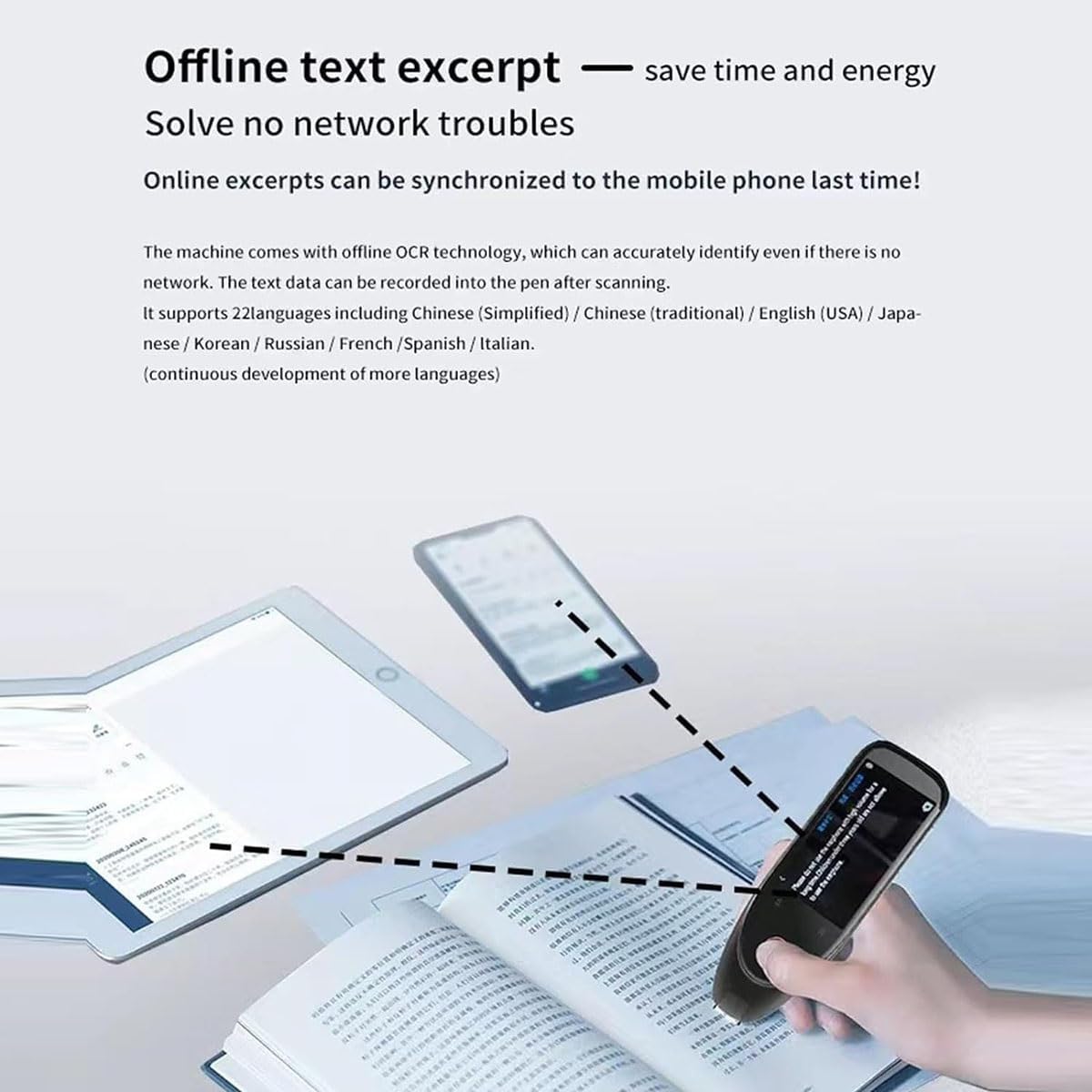 Convenient and Portable: The compact design of our Reading Pen makes it incredibly portable, allowing you to carry it with ease wherever you go. Say goodbye to bulky translation books or relying on internet connections for translation services. With our Scanning Pen, you can have instant translation at your fingertips anytime, anywhere