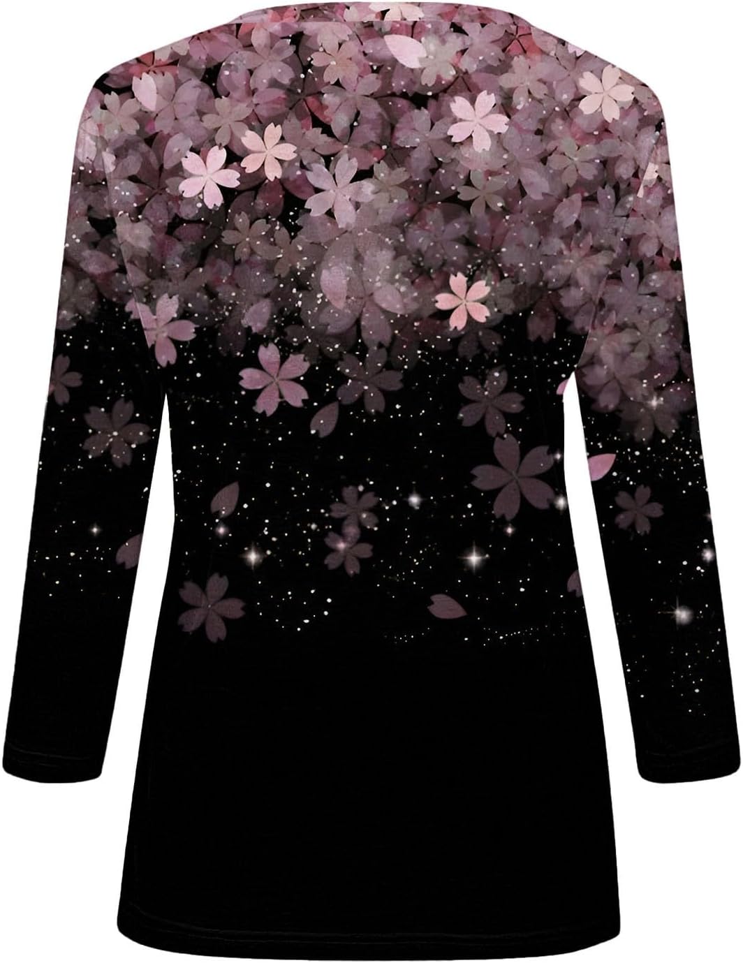3/4 Length Sleeve Womens Tops Casual Round Neck Cute Tops Fashion Loose Fit T-Shirts Ladies Tops and Blouses
