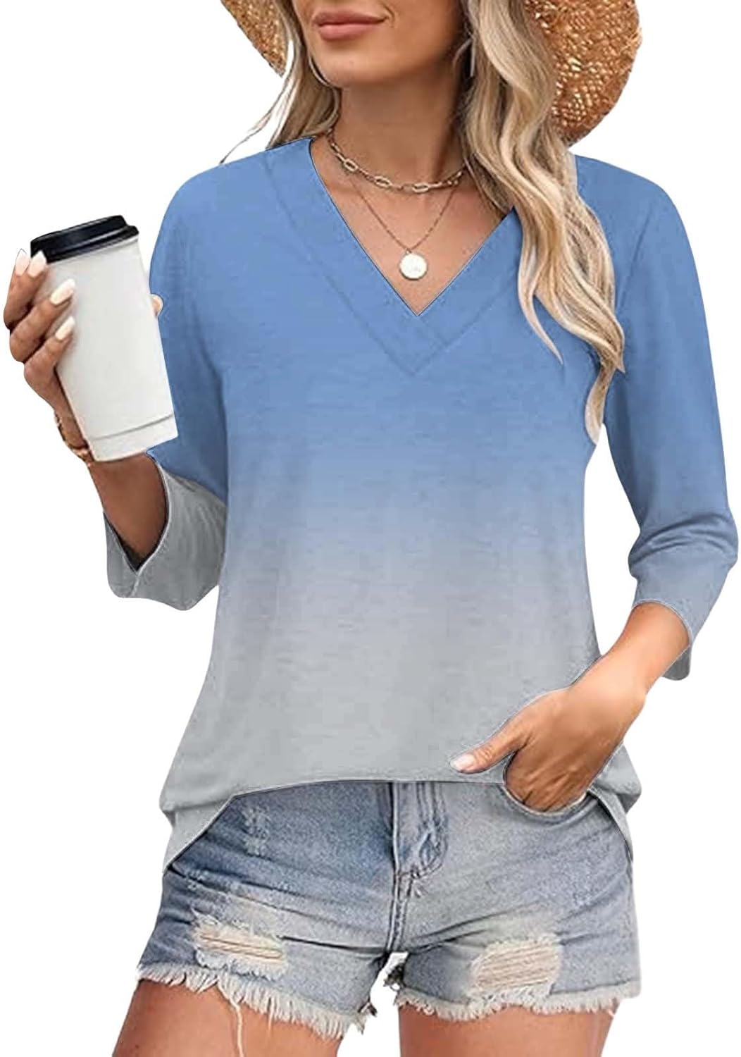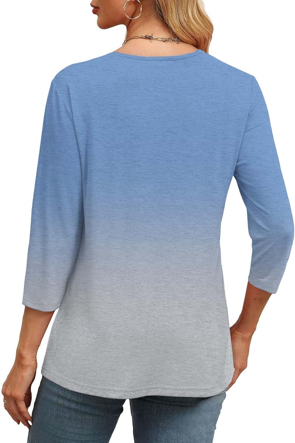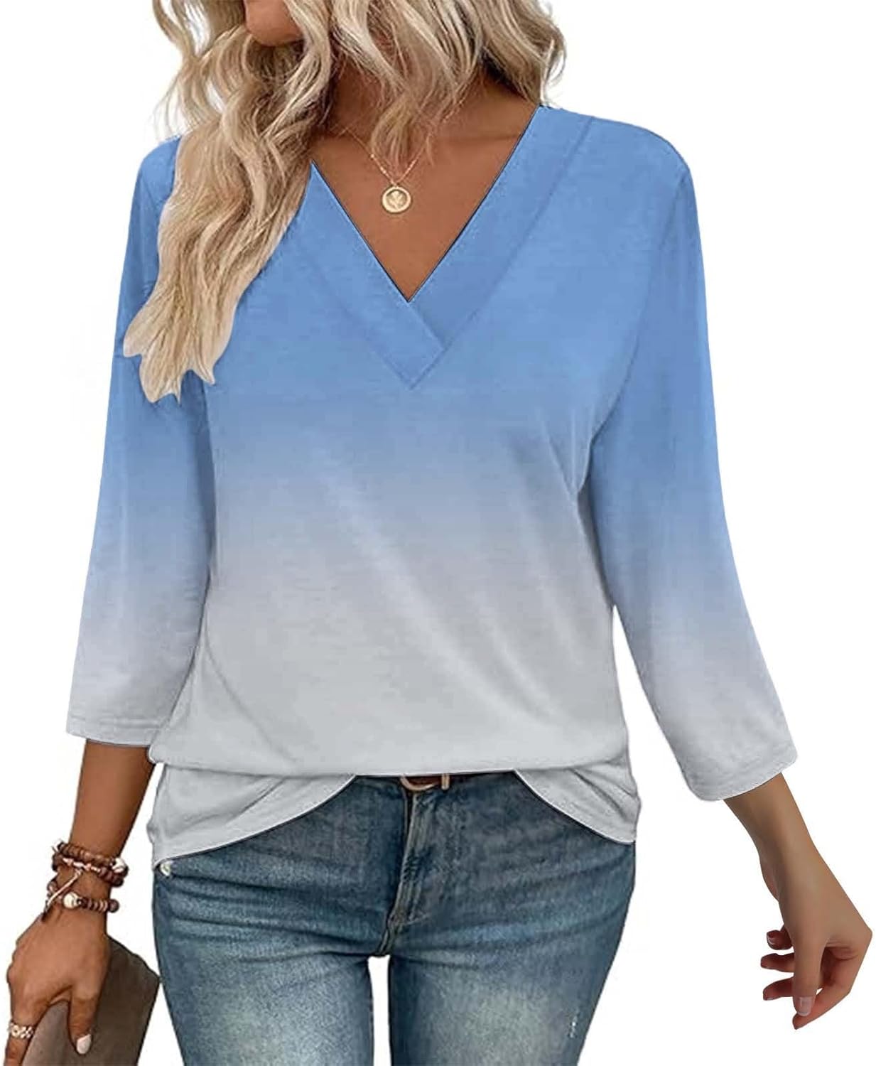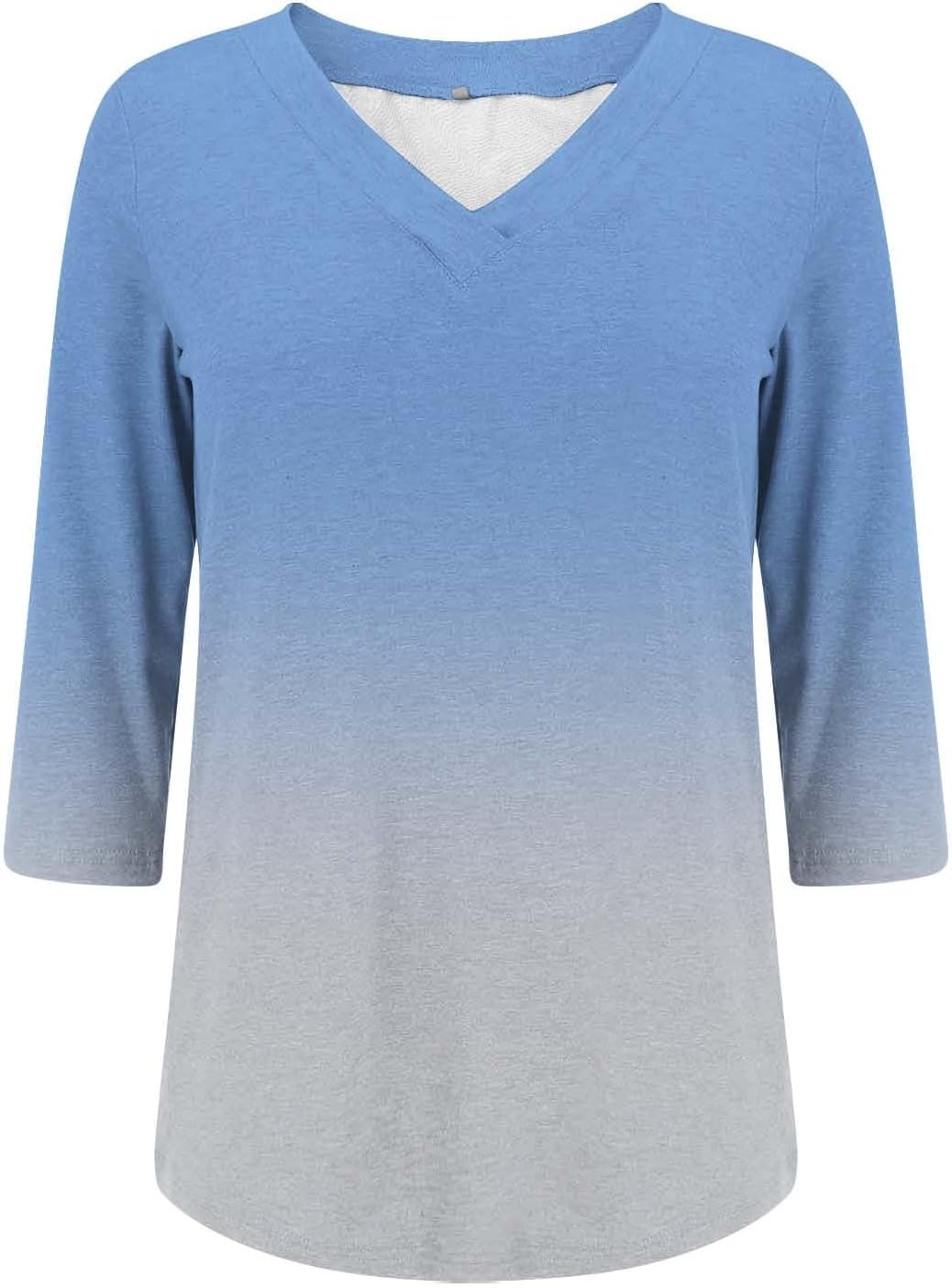 3/4 Sleeve Tops for Women V Neck Casual Loose Fit Tunic Tops Basic Blouse Stylish Comfortable Shirts