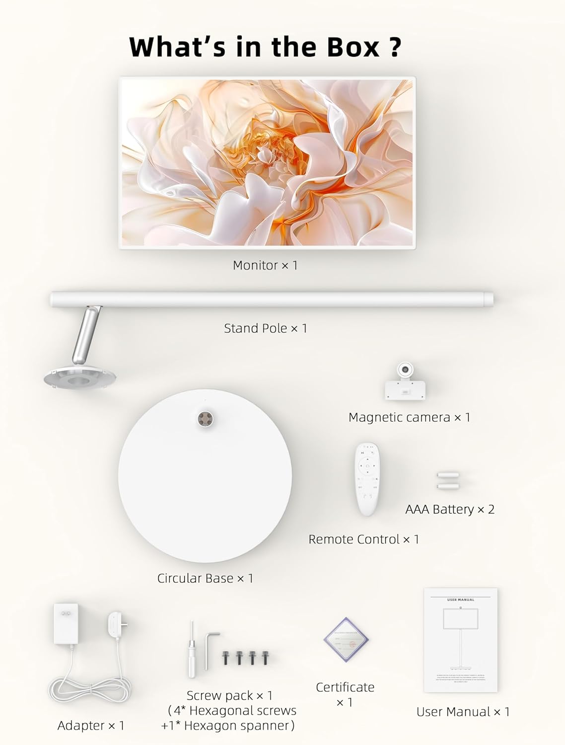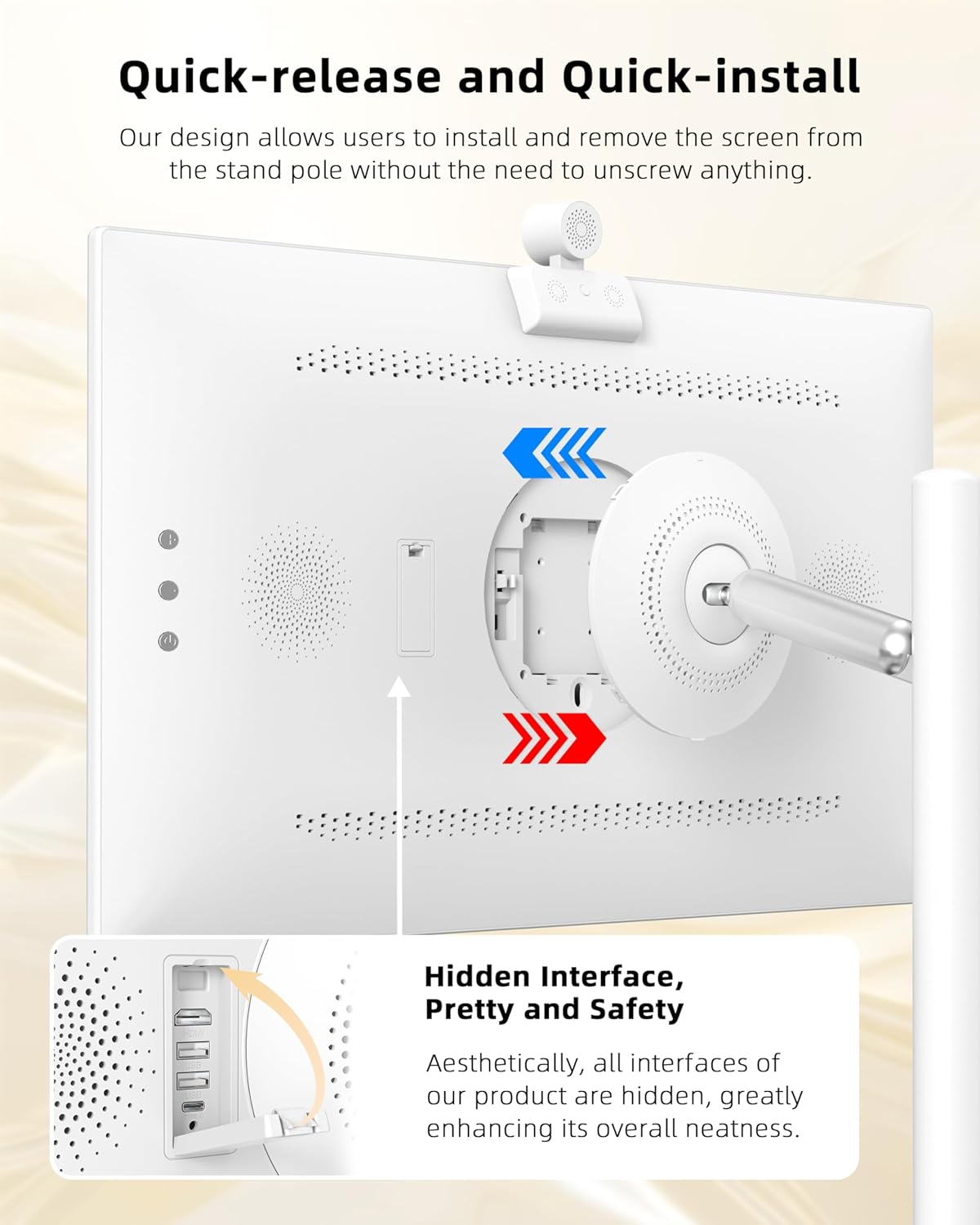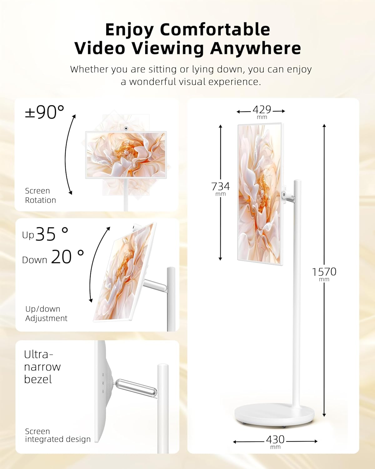 Magnetic Wide-Angle Camera for Enhanced Photography: Capture wide-angle shots or group photos with the built-in magnetic camera, adding even more functionality to your rolling TV on wheels. Whether you’re at home or on the go, enjoy epic visuals and photography with this portable smart screen, designed for both exploration and entertainment.