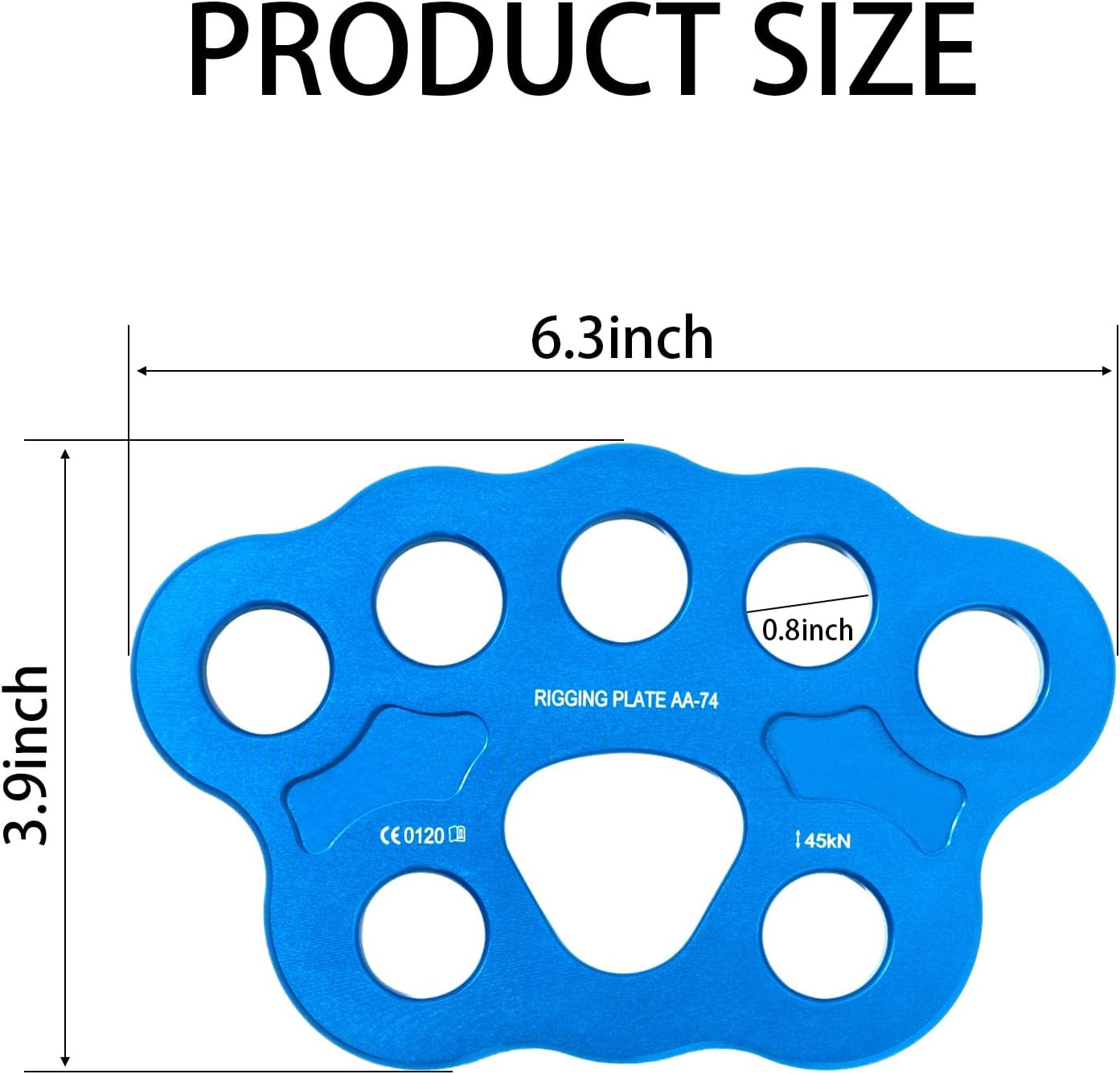 45KN Durable Climbing Rigging Plate, 8 Holes Paw Rigging Plate for Even Load, Multiple Anchor Plate for Climbing, Backyard Ziplining & Rescue, Blue