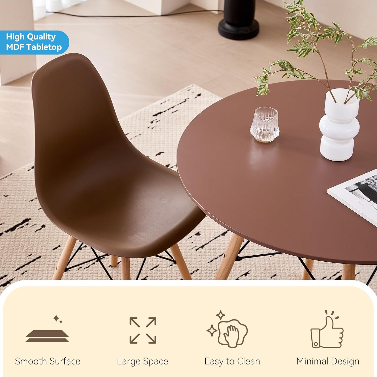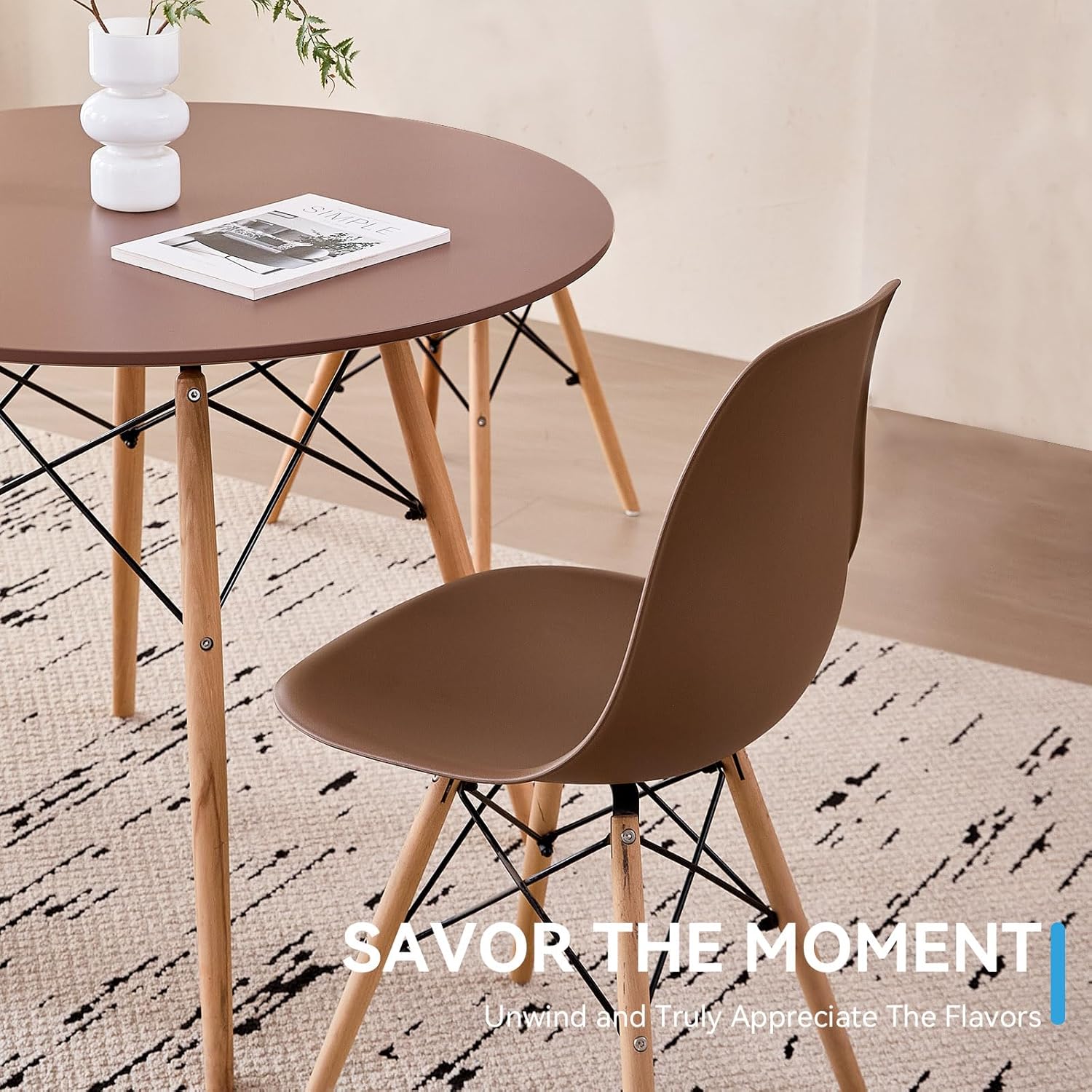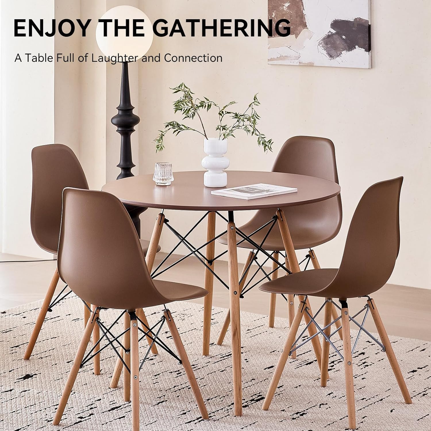 5-Piece Round Dining Table Set, Small 35.5″ Kitchen Table Chairs Set of 4 Space Saving Furniture, Plastic Seats, Solid Wood Legs, for Living Room Apartment Office Home, Brown