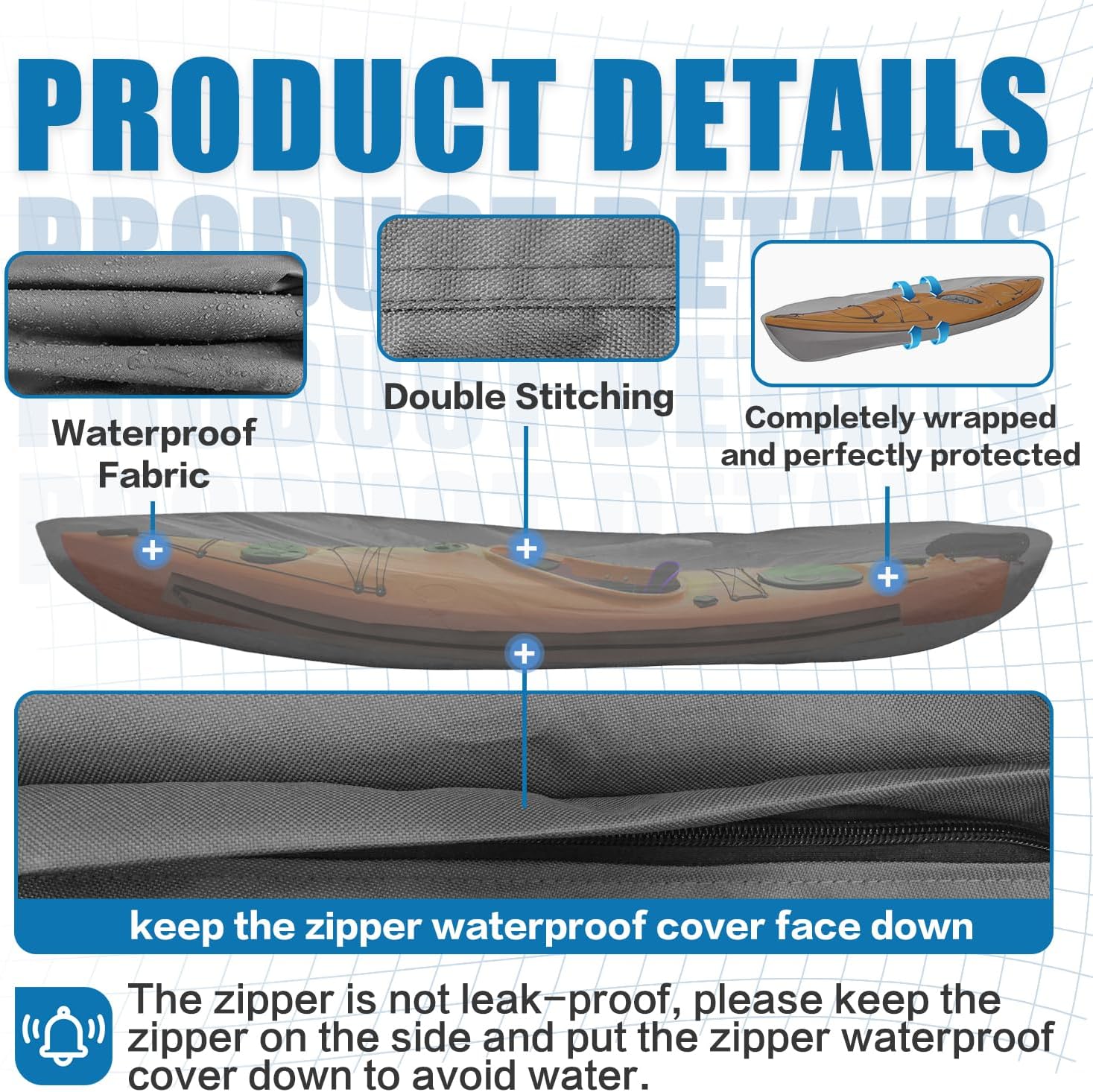 Innovative Side-Zipper Design: VINPATIO’s latest kayak cover features an innovative side-zipper design, enhancing waterproof performance and providing superior protection for your kayak during outdoor storage. If you have any questions about the kayak cover, please contact us promptly, and we will provide a satisfactory reply within 24 hours.
