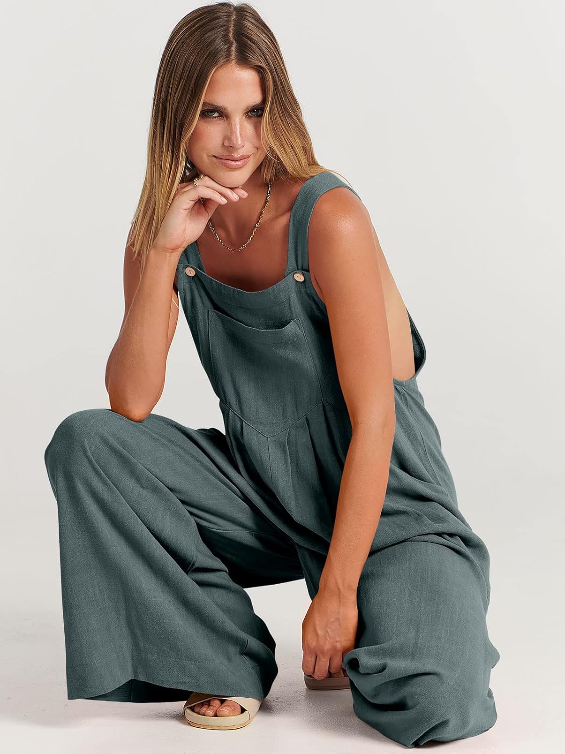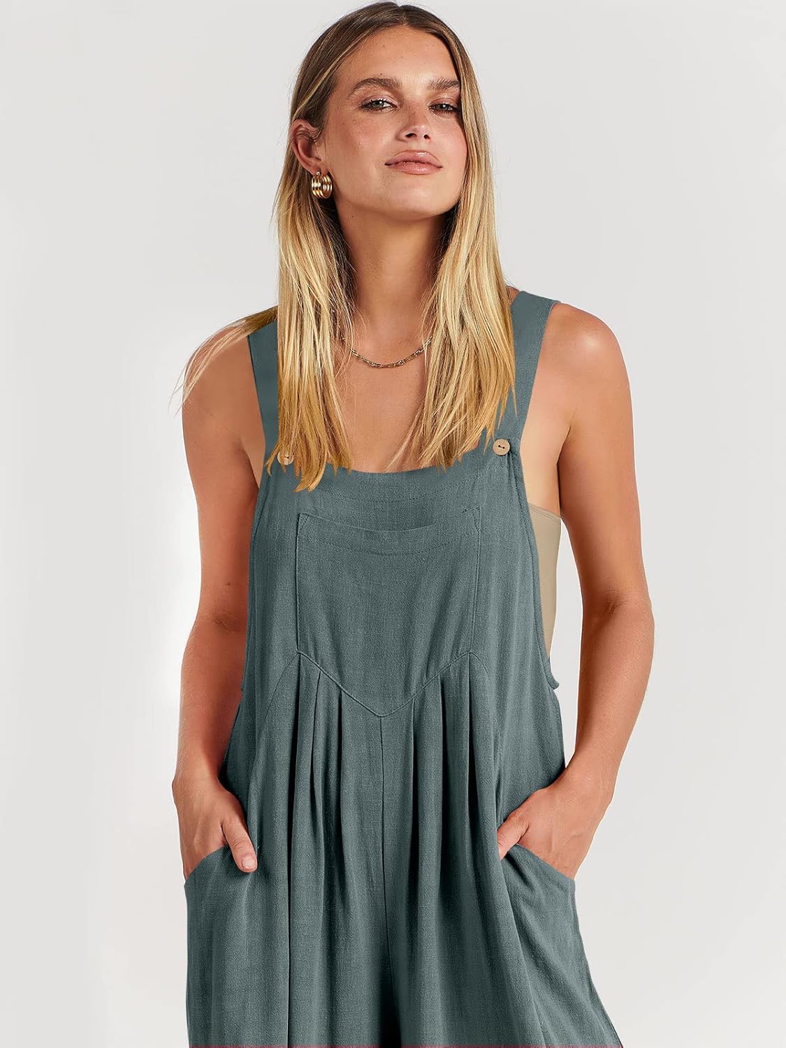 ANRABESS Womens Jumpsuits Overalls Wide Leg Casual Summer Outfits Linen Rompers Jumpers Sleeveless Straps 2025 Clothes
