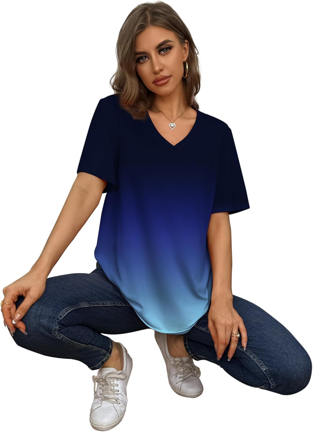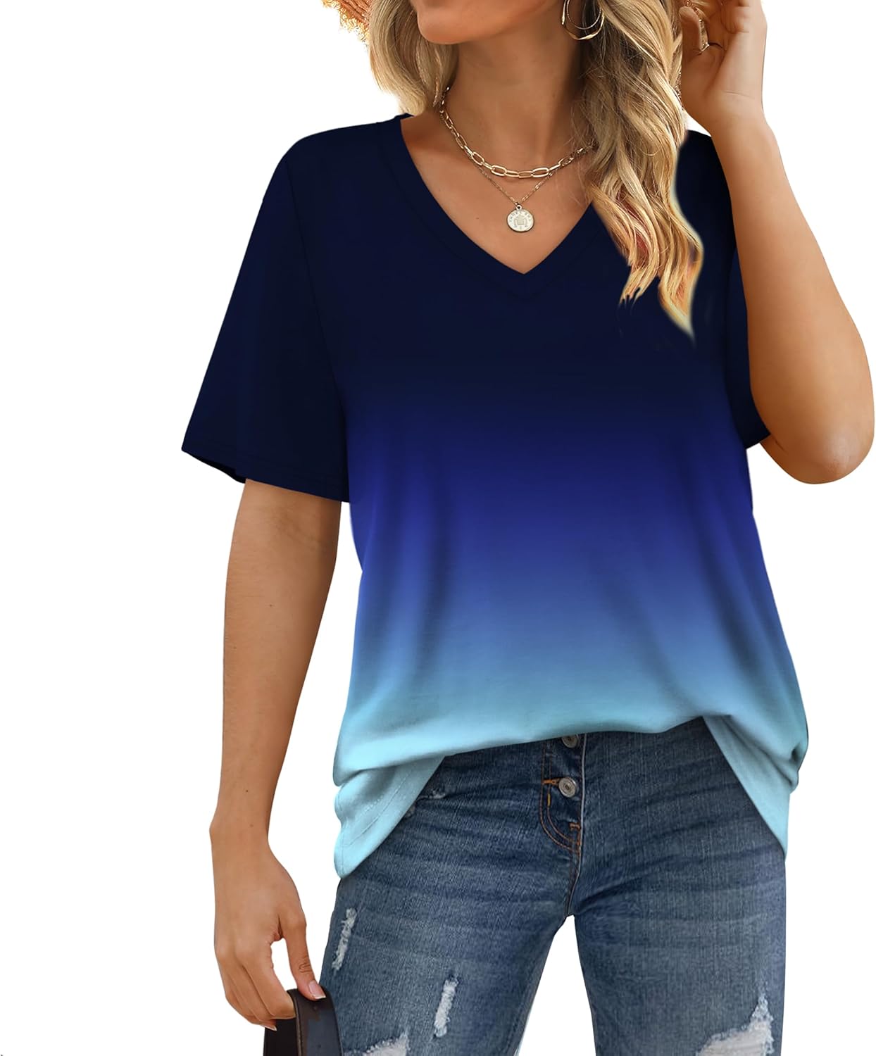 Aokosor Womens T Shirts V Neck Short Sleeve Casual Loose Tees Tops 2025 Trending Now