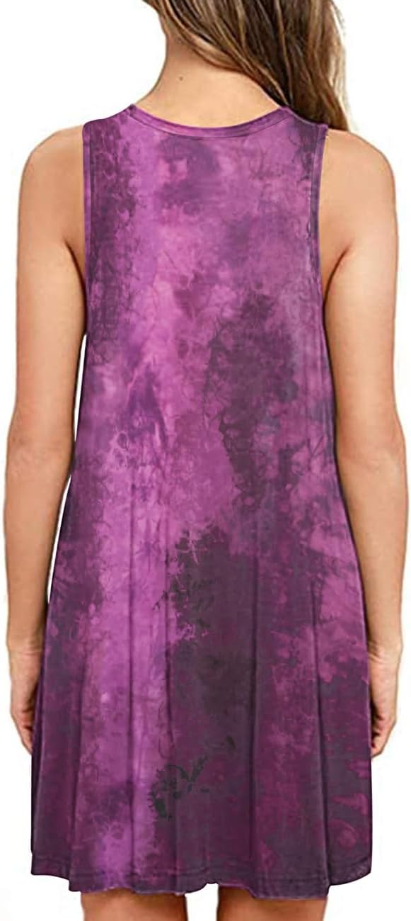 Women’s Casual Tie Dye Tank Dress Sleeveless Scoop Neck Swing Tshirt Dress