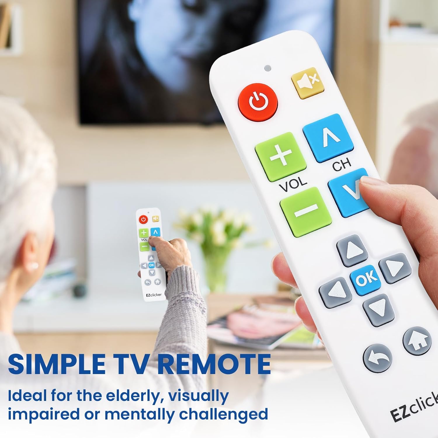 Easy Big Button Design: The remote includes specialized features like an extra-large enter button, big button universal controls, and tactile feedback, catering specifically to seniors and those with limited dexterity or vision. It aims to provide a more comfortable and accessible user experience.