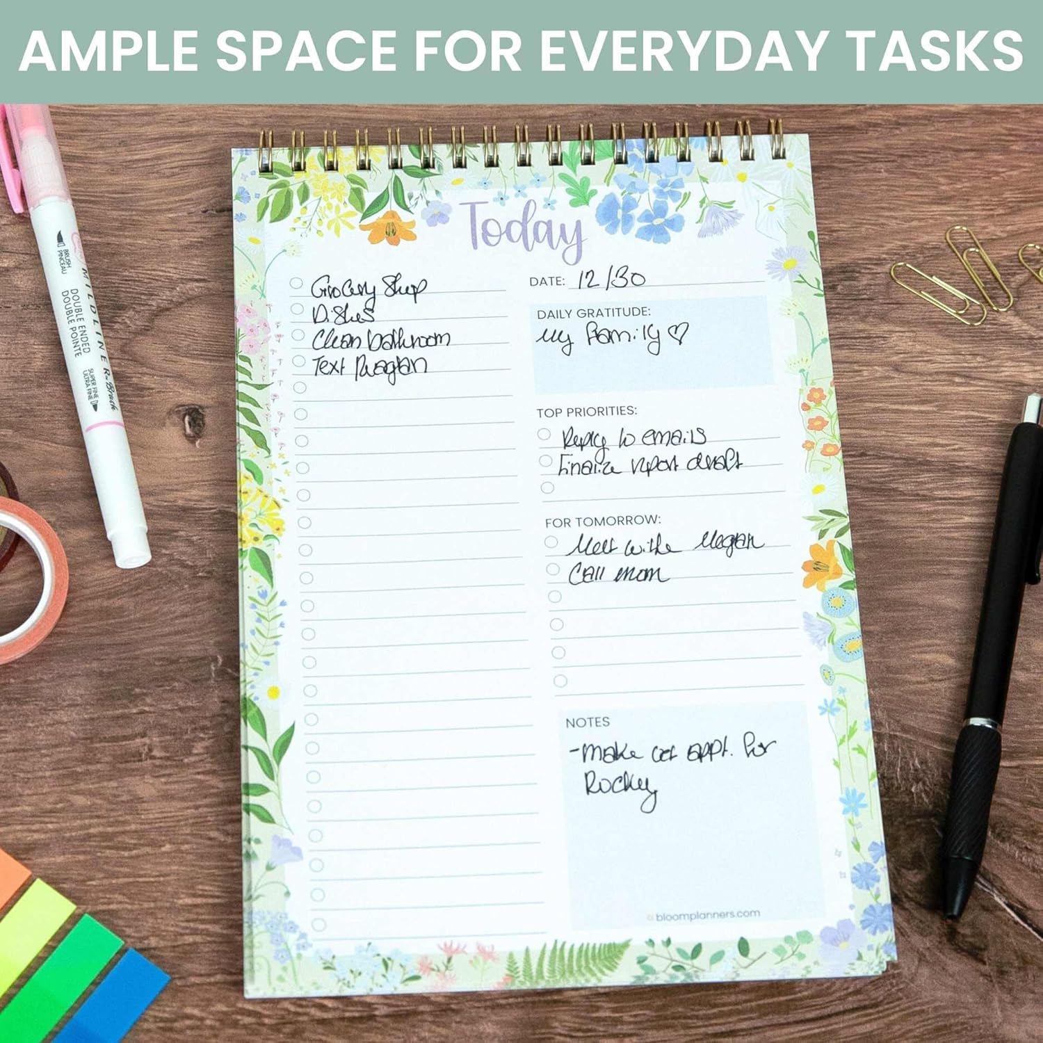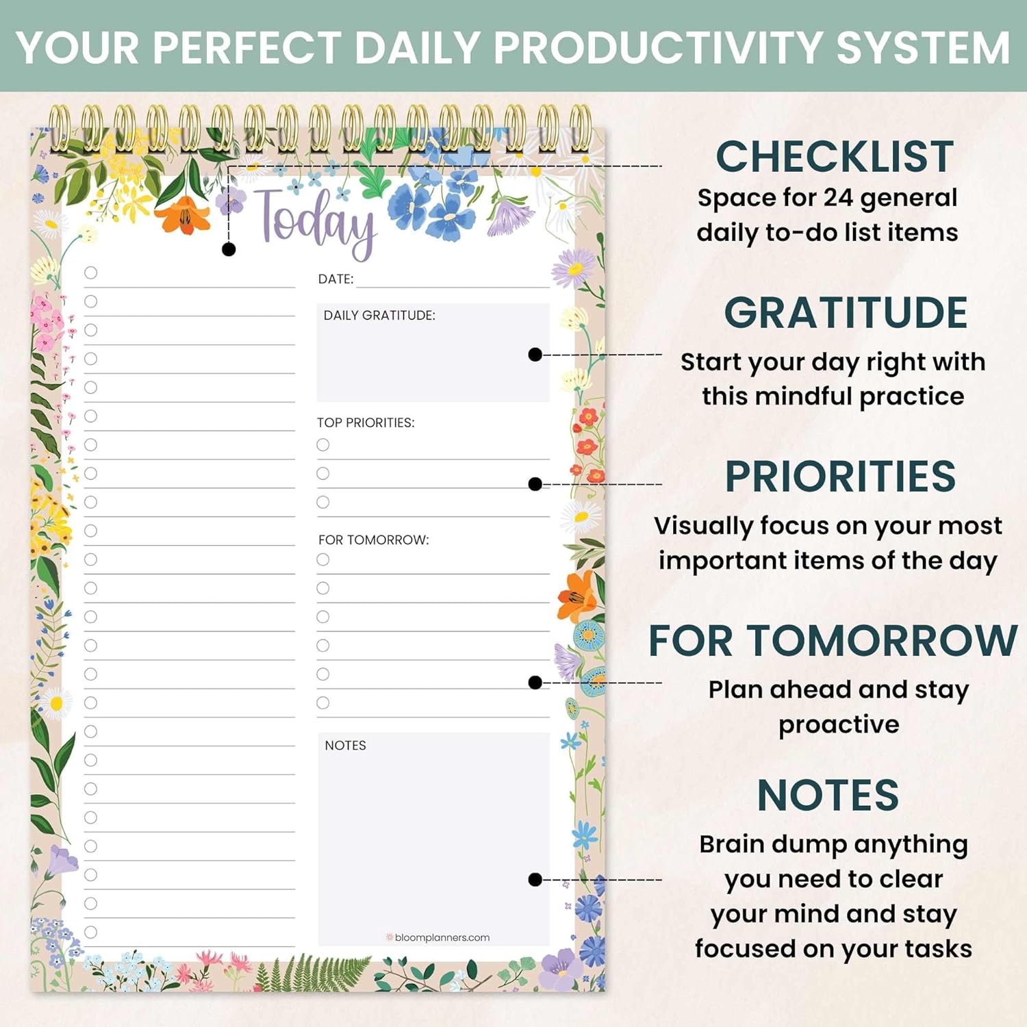 bloom daily planners To Do List Notebook for Work – Undated Page A Day Daily Planner, 60 Sheets for Daily Tasks & Goal Setting – 6” x9” To Do List Pad for Office, Home and School – Garden Party