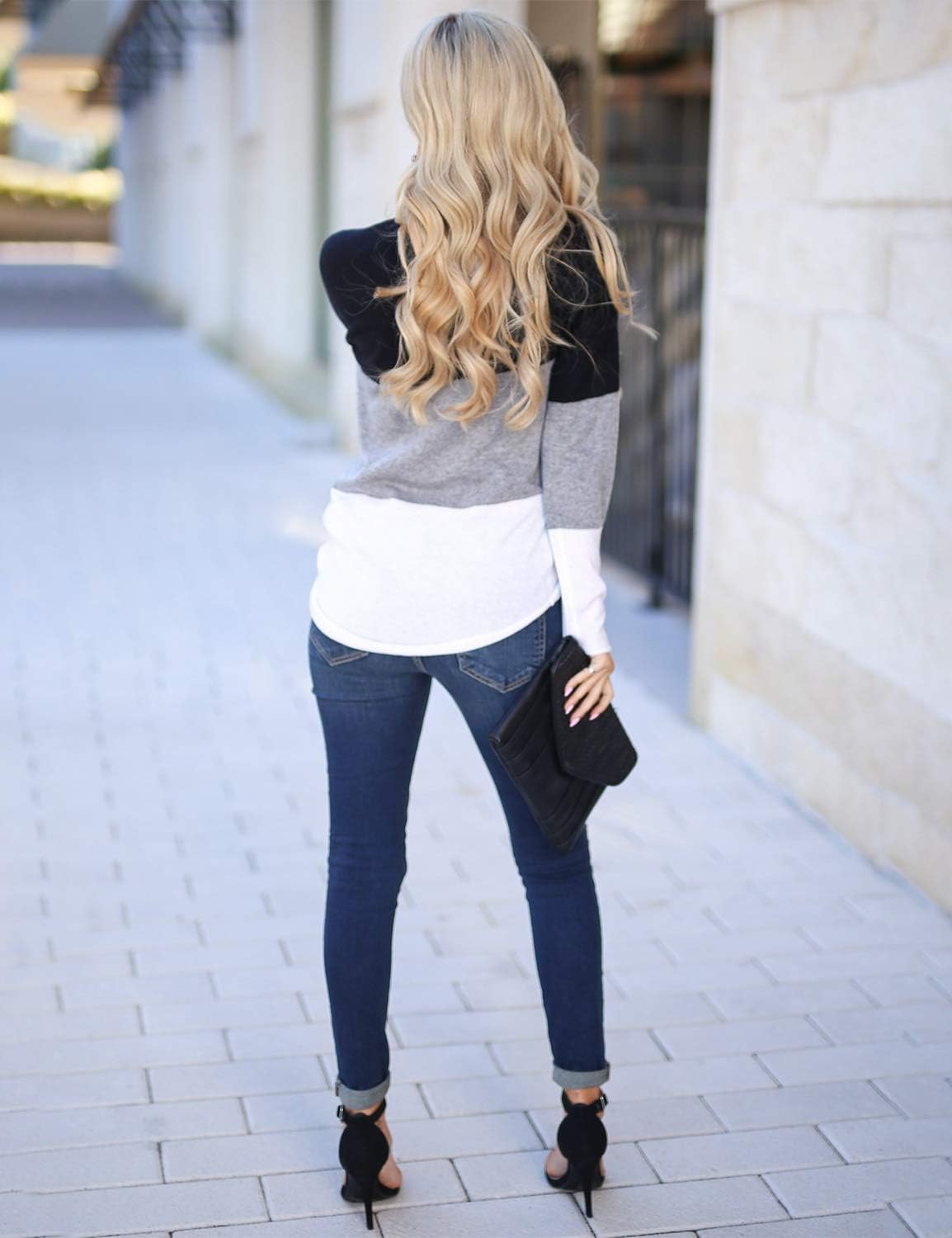 Blooming Jelly Women’s Long Sleeve Tunic Tops Color Block Shirt Crewneck Casual Pullover Blouses Fall Outfits 2024