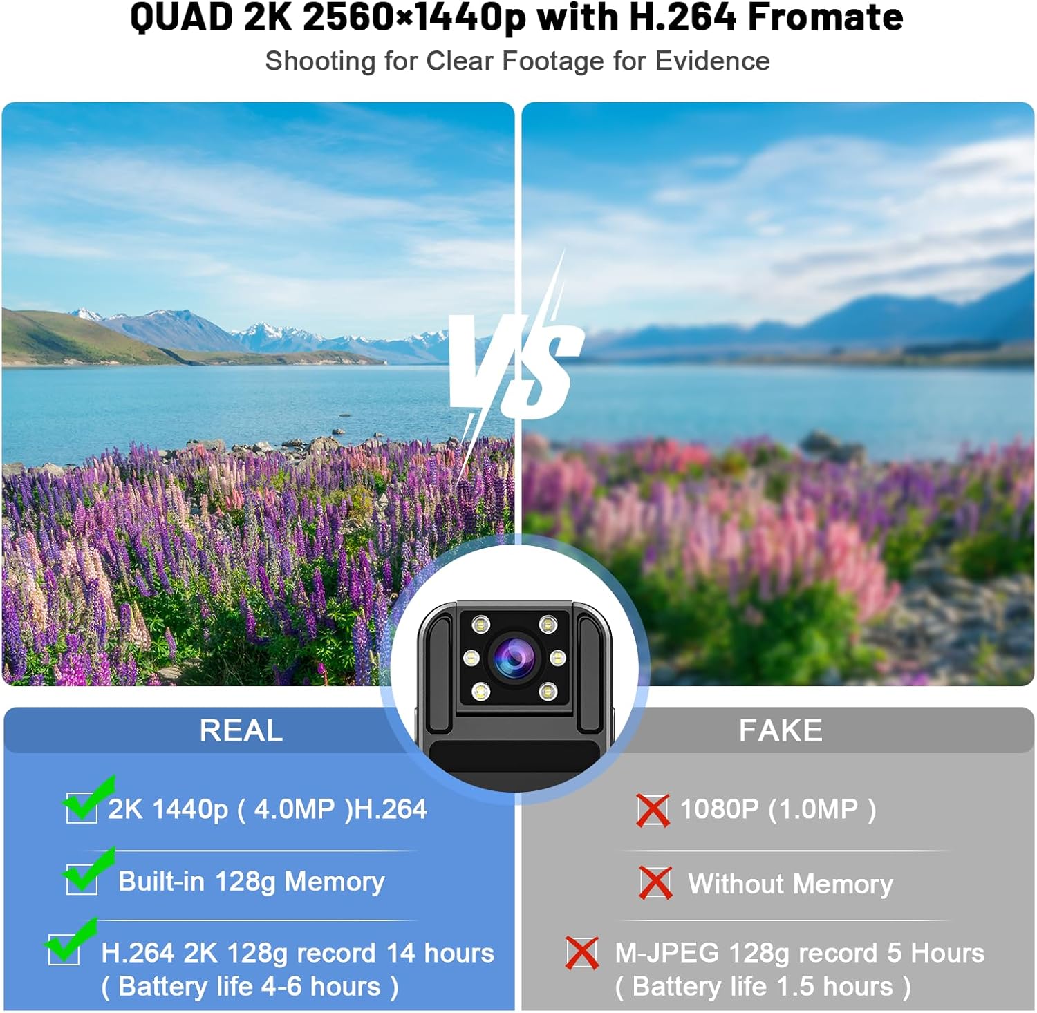 Body Camera with 1.4” Screen Audio and Auto Video Night Vision 1440P UHD Mini Police Wearable Body Worn Cam Portable Small Personal Camcorder Sport Action Outdoor Video Recorder (2K-128GB)