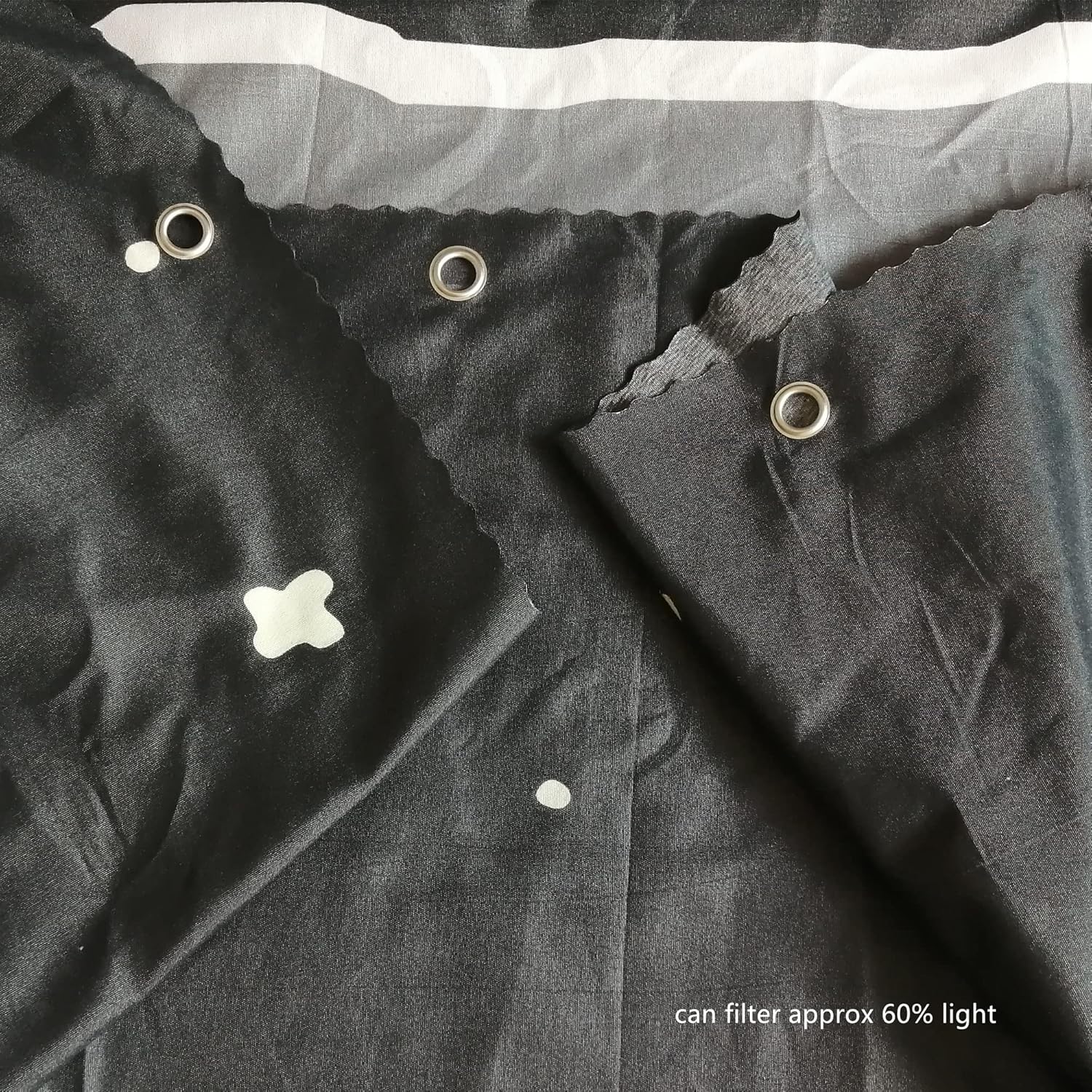 Material: Medium thickness breathable polyester cloth, allows proper air circulation. offer you comfortable use experience in all the four seasons. Not totally blackout, weaken the light that goes into, create cozy environment for sleeping. Easy machine wash and hang to dry