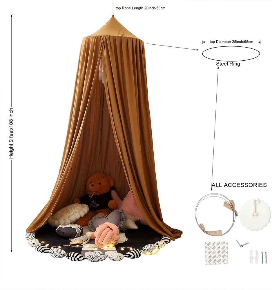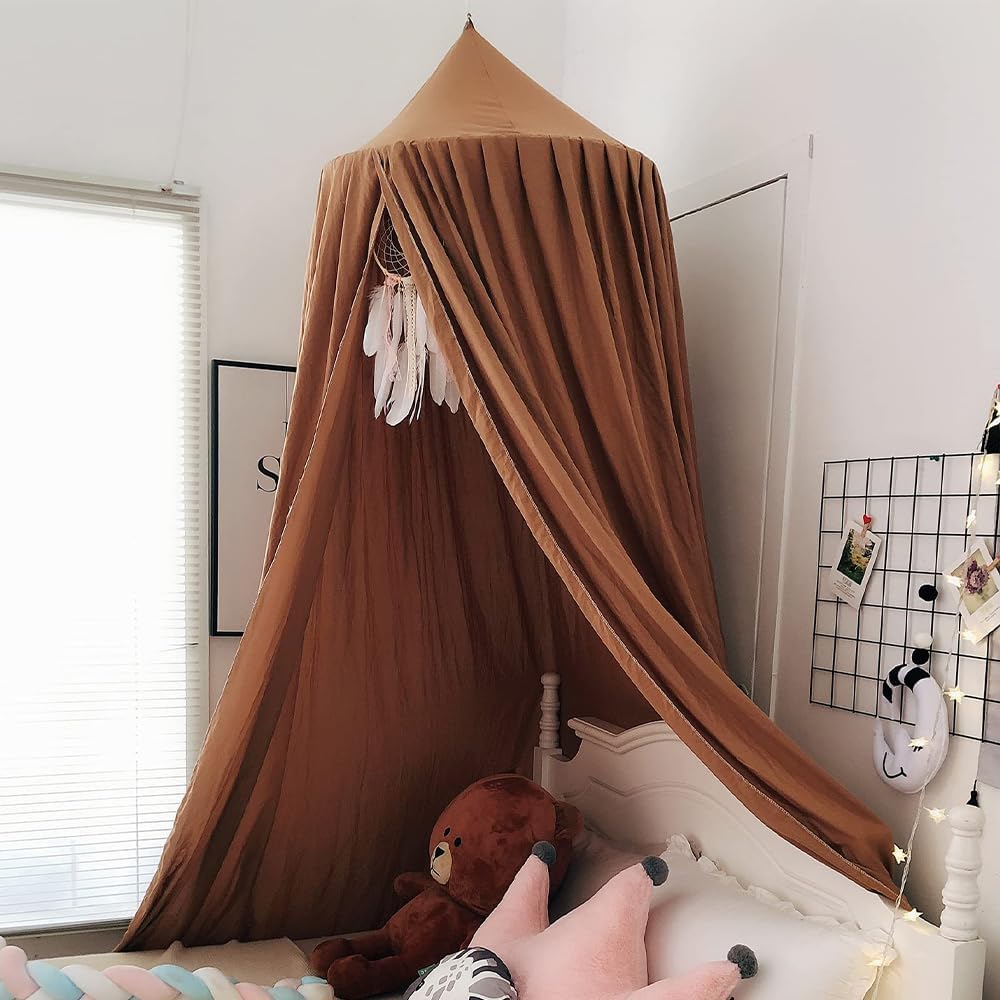 Bunnikins & Clover Bed Canopy for Girls Boys Bedroom Decor, Round Dome Mosquito Net for Baby Crib, Nook Castle Game Tent Nursery Decoration for Child, Play or Reading (Coffee)