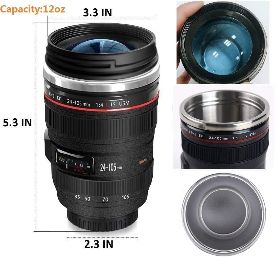 A CAMERA LENS anyone can afford😮: It’s true! Our Camera Lens Cup really is the closest thing to the EF 24-105mm f/4 L IS USM Lens! YES,A Great Camera Lens-like Gift! Gift a Camera Loving Friend or Gift Yourself, JUST IMAGINE! You bring it to a meeting, your co-workers saw it and was the topic at the start of the meeting,that can help to break the ice and start a nice conversation. The perfect way to CLICK your stress away.
