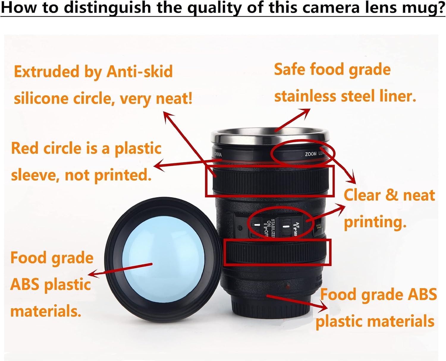 PREMIUM QUALITY: DEEXITO Camera Lens Coffee Mugs are made of food grade ABS plastic materials and premium-quality stainless steel inside, making it safe for drinking. Insulated stainless steel interior transforms your mug into a convenient travel thermos! KEEP HOT/COLD BEVERAGE STAY LONGER…