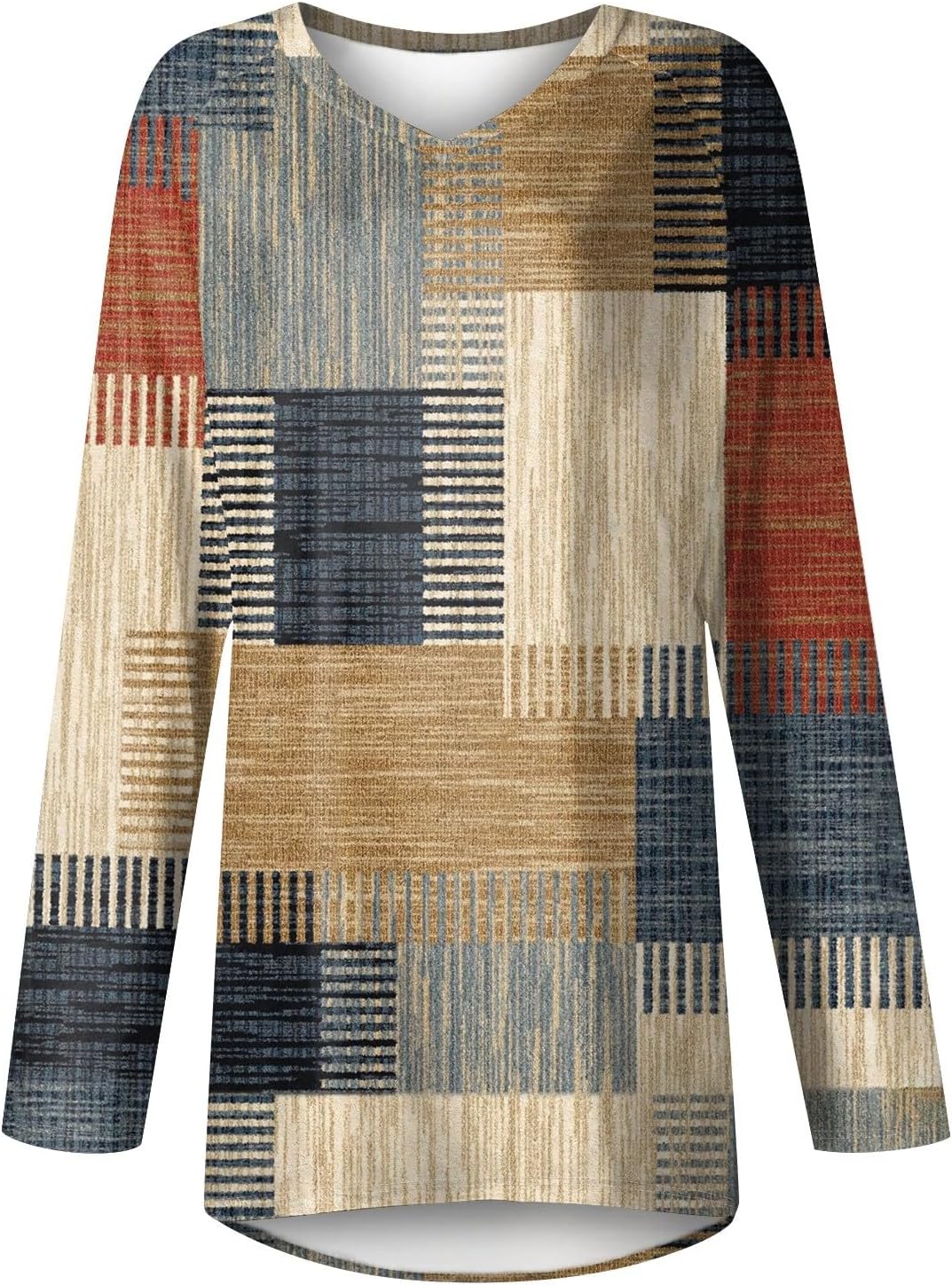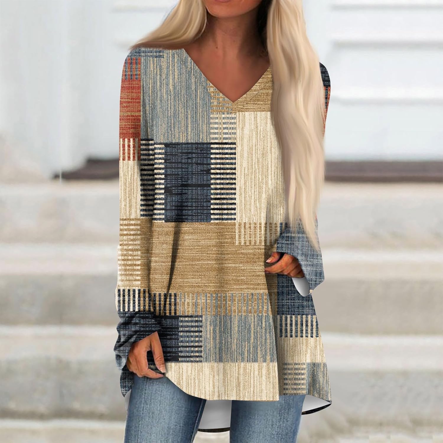 COTECRAM Women Long Sleeve Shirts V Neck Long Loose Fit Tunic Tops Casual Spring Fashion Outfits Trendy Clothes 2025
