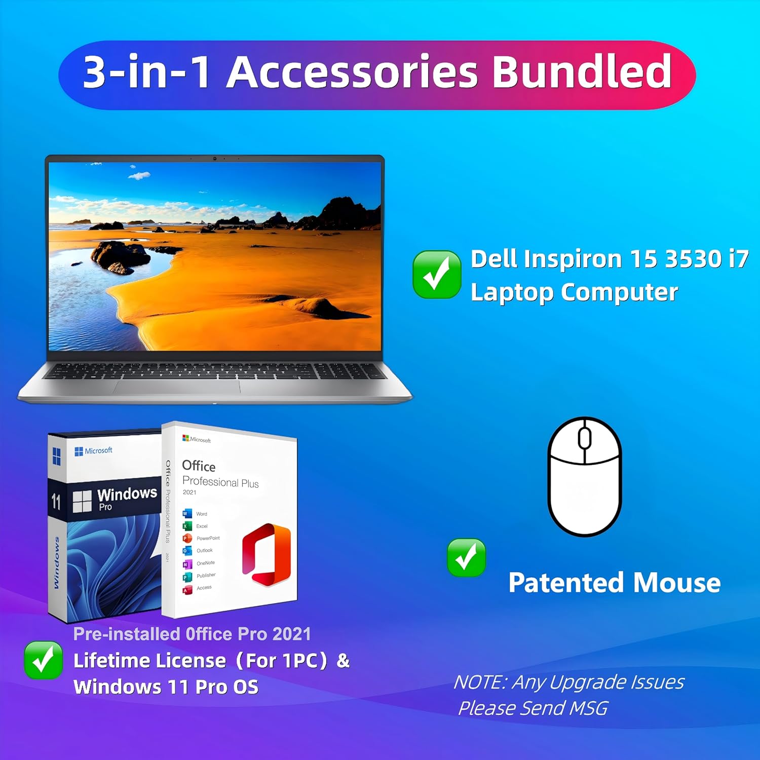 Dell Inspiron 15 3530 Business Laptop Computer, Lifetime Office License, Intel 10-Core i7-1355U up to 5GHz, 32 GB RAM, 2 TB SSD, 15.6″ FHD 120 Hz, Wi-Fi 6, Backlit KB, FHD Webcam, HDMI, Win 11 Pro