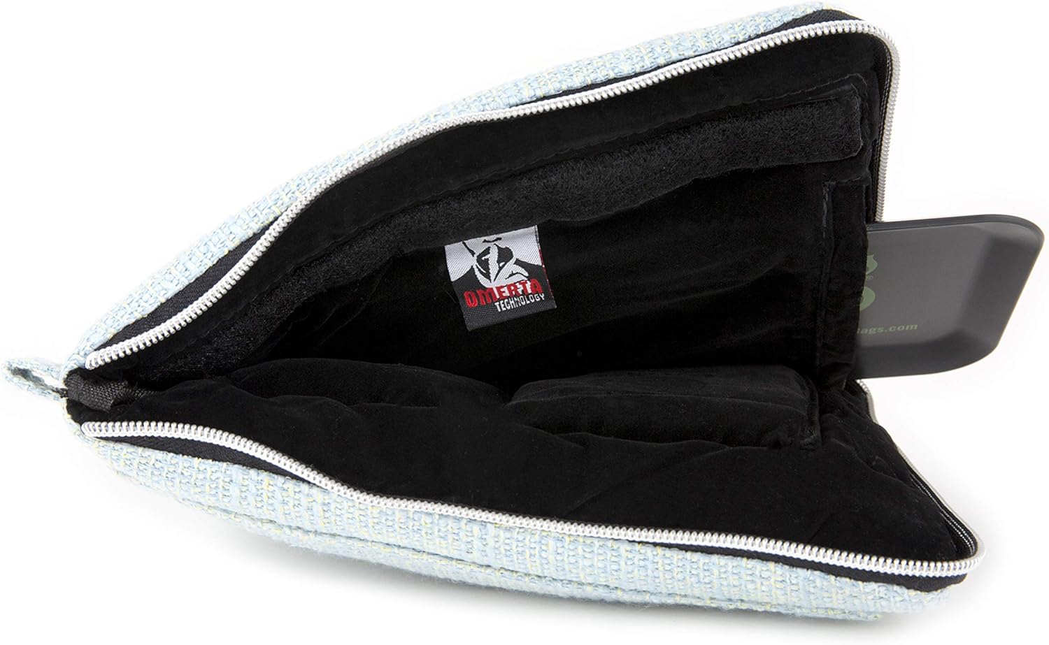 This boi offers a roomier fit for your glass figurines, or ample space to hug your bigger tech. Check out two open, padded pockets and your tray-containing, carbon-lined, zippered pocket inside. Just remember: if you don’t want to smell it, keep it discreet in your Omerta-tagged pocket.