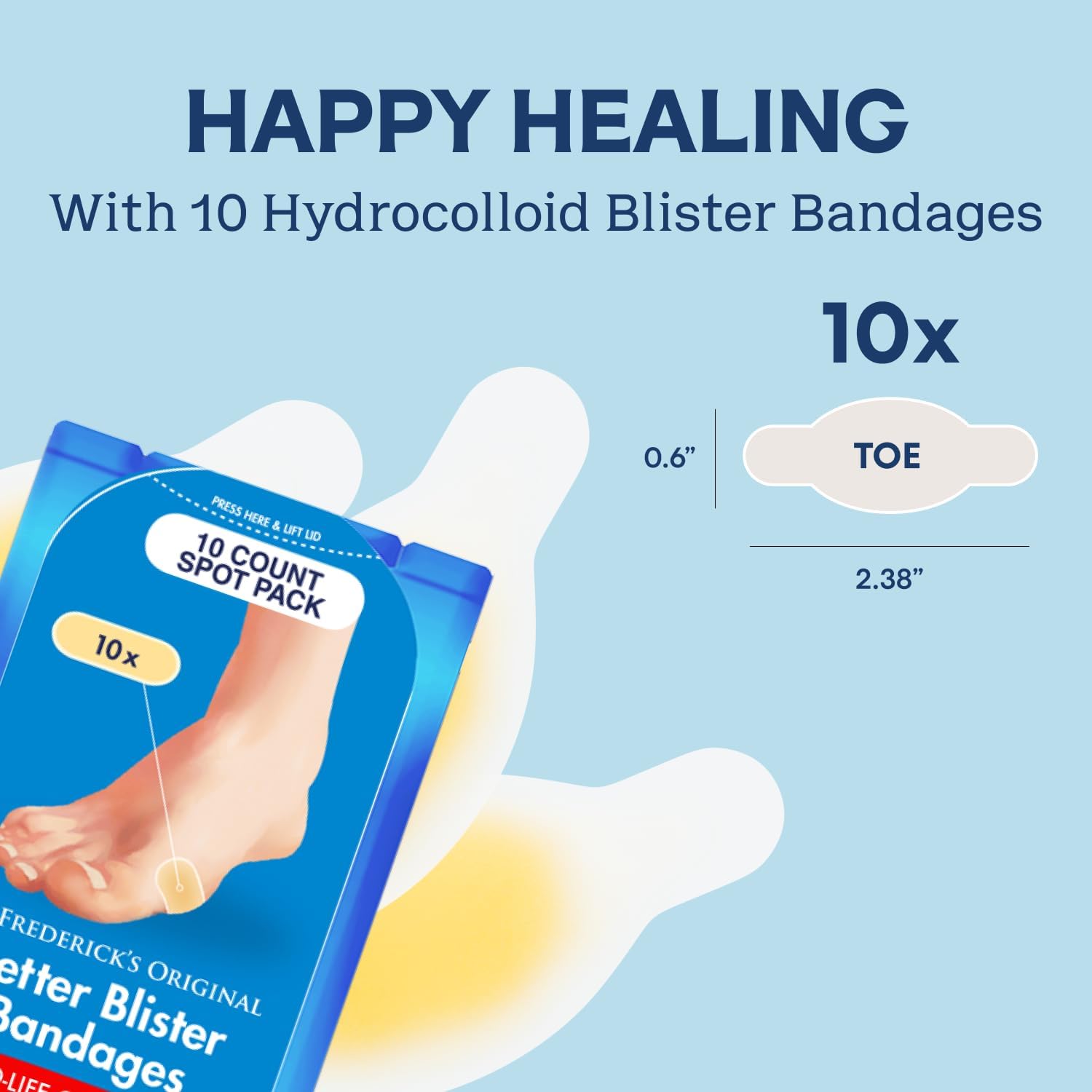 Dr. Frederick’s Original Better Blister Bandages – 10 ct Toe Pack – Water-Resistant Hydrocolloid Pads for Foot & Toe Protection & Recovery – Blister Relief Pads