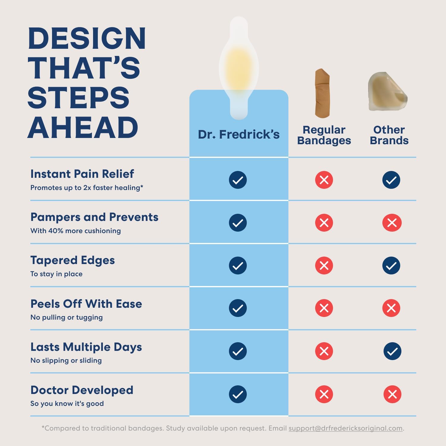 A Commitment To Your Satisfaction: At Dr. Frederick’s Original, we prioritize your satisfaction, which means creating the best possible products for you. We stand behind Better Blister Bandages with our industry-leading pledge. If our product doesn’t help you get back to doing what you love, we’re dedicated to finding a satisfactory solution.
