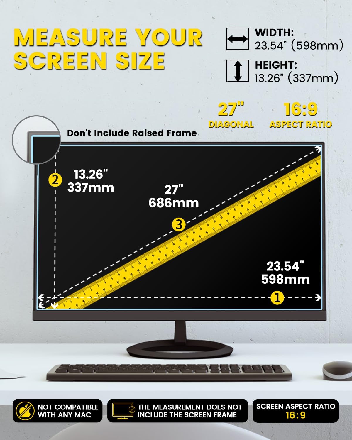 【Compatible Model】 This 27 inch privacy screen for computer monitor is compatible with 27 inch monitor with Aspect Ratio 16:9 widescreen computers. Please verify your computer screen’s length and width measurements before ordering
