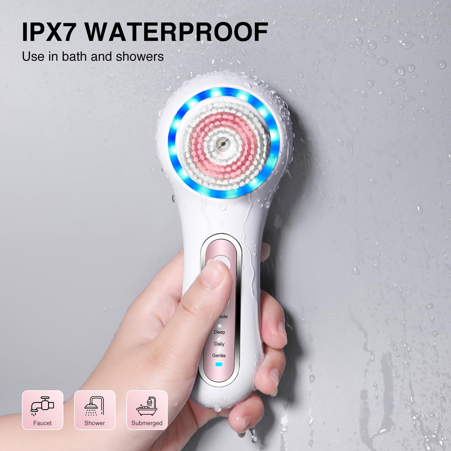 Be the first to review “Facial Cleansing Brush,Red & Blue LED Light Skin Care Device,Rechargeable IPX7 Waterproof with 5 Brush Heads,Face Brush Use for Exfoliating, Anti-Aging and Makeup Blending”
