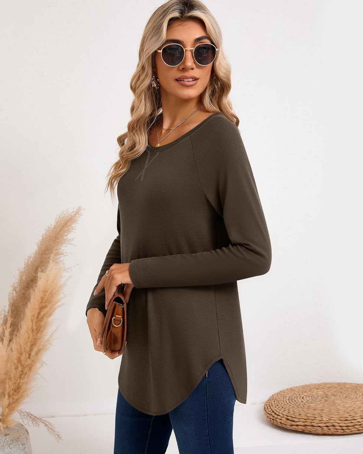 Ficerd 3 Pack Women’s Long Sleeve Shirts, Loose Fit Tshirts Casual Sweatshirts Crew Neck Tunic Tops Side Split Pullover Tees