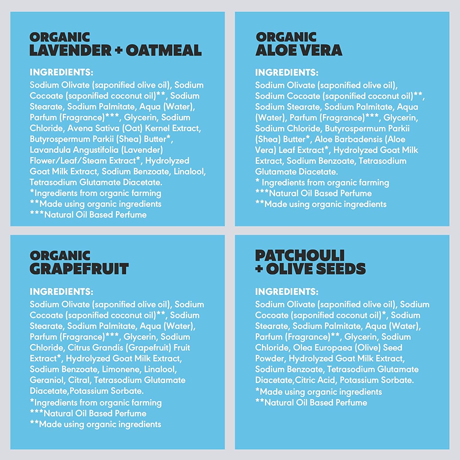 99.96% NATURAL INGREDIENTS – Organic perfumes, oils, extracts, & natural goat milk are used in these body wash eczema bars. And! The olive oil & organic coconut oil provide a luscious natural lather!