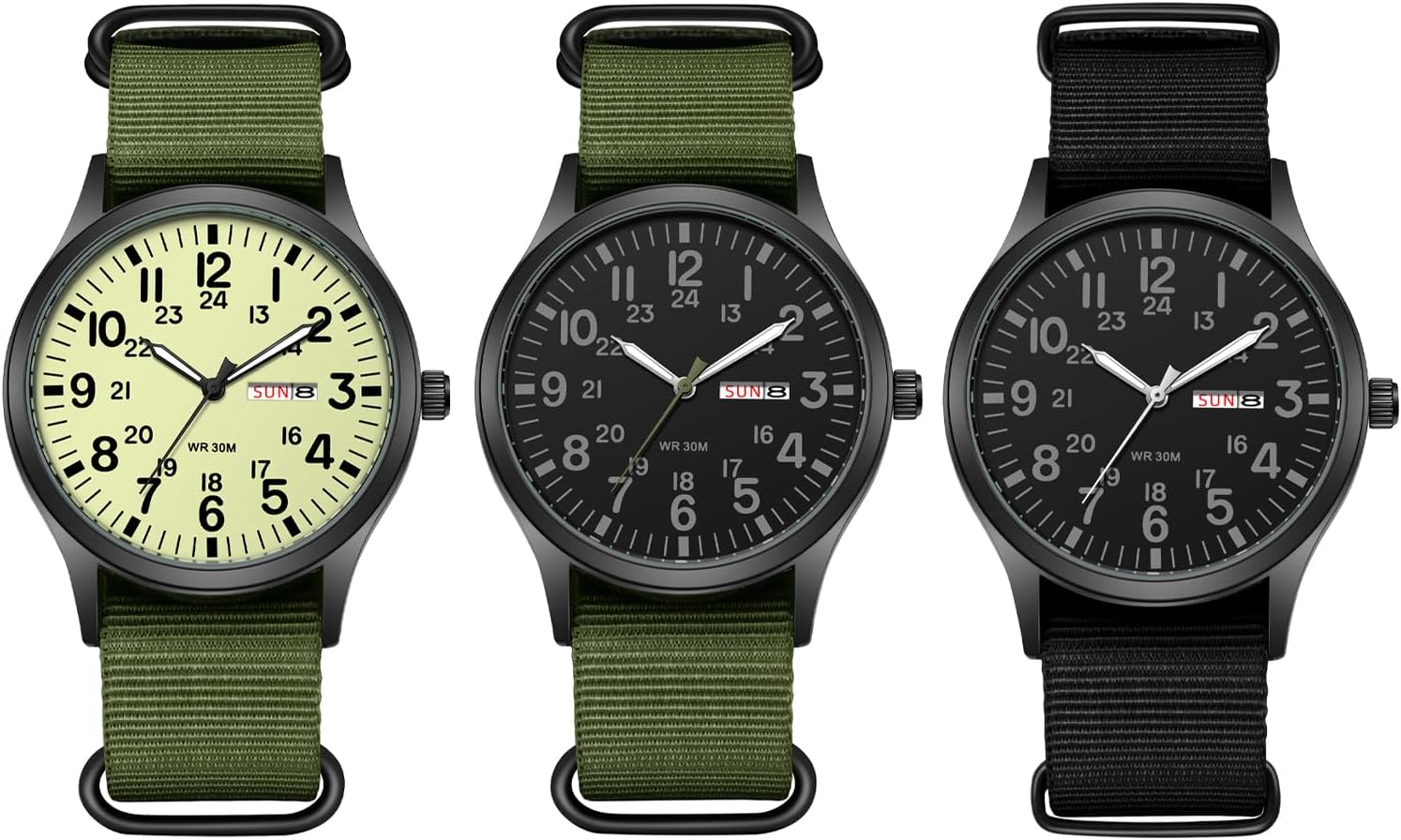 JewelryWe Men’s Tactical Military Watch: Practical Date Day Luminous Arabic Numerals Green Nylon Strap Black Large Dial Outdoor Watch for Men Mountaineering Night Riding Jewelry Gift