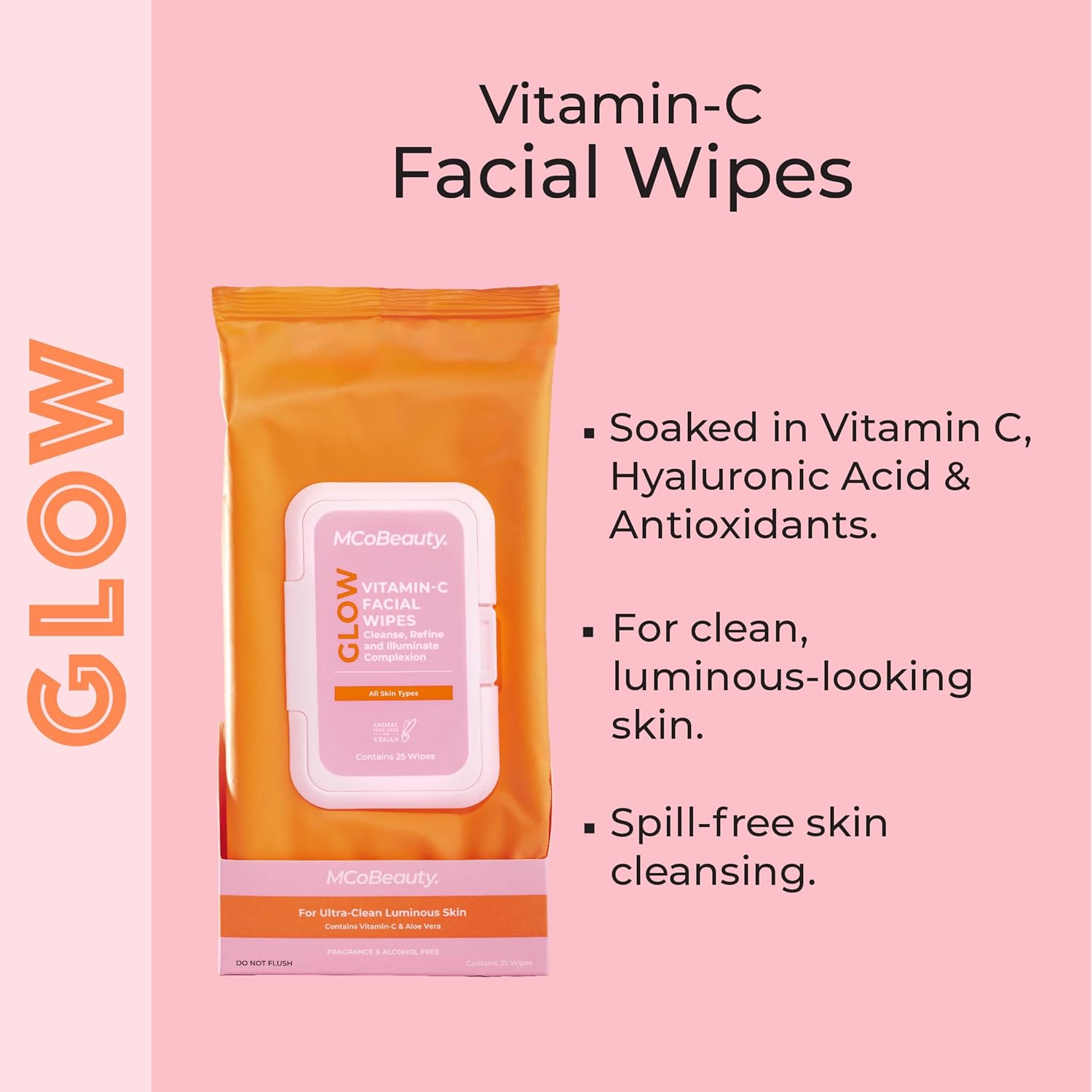 MCoBeauty Vitamin C Facial Wipes, Blend of Vitamin C, Hyaluronic Acid and Antioxidants, Pack of 25 Wipes, Vegan, Cruelty Free Cosmetics