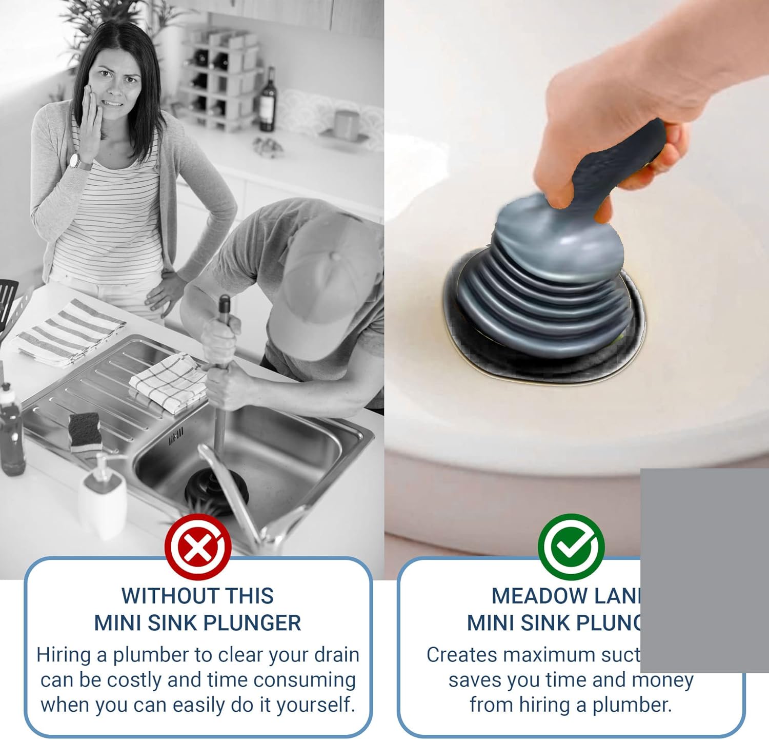 Meadow Lane Small 7″ Sink Plunger – Mini Clog Remover for Kitchen & Bathroom Sink Drains – Hand Ergonomic, Space-Saving & Powerful Suction – Universal Fit for Home or Commercial Use, Silver