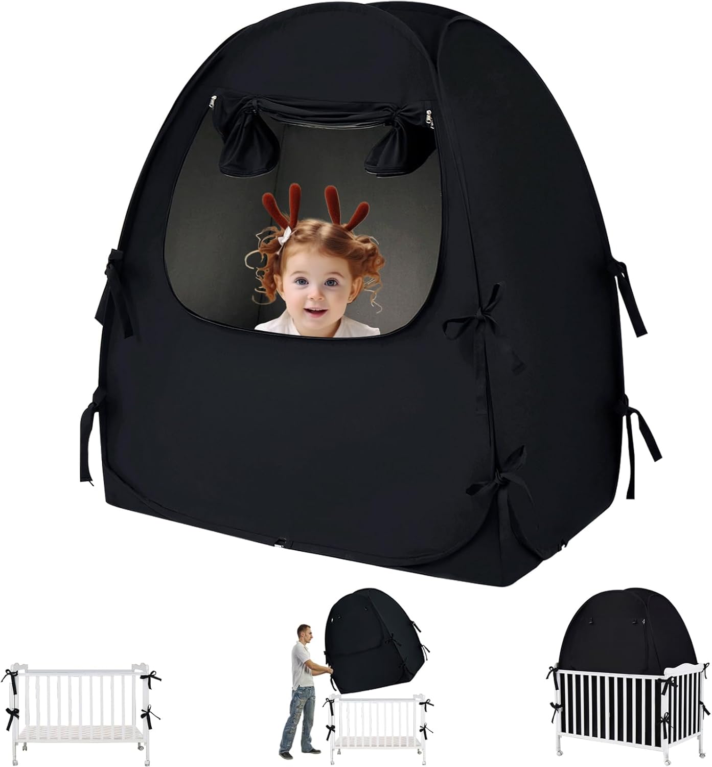 Lightproof Tent:Our cribs tents blocks over 90% of light,blocks out the strong light, which can easily create a dark space and comfortable sleeping environment for your baby, and keep your baby in a good sleep state at any time.