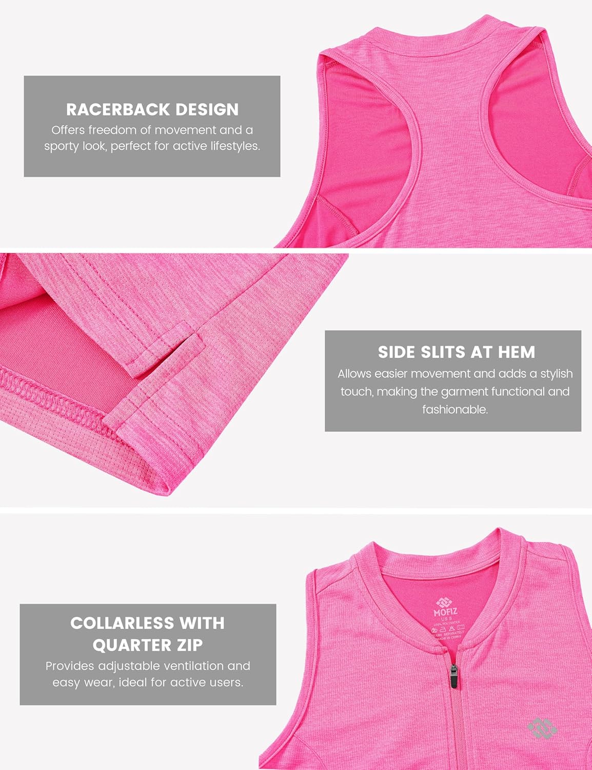 MoFiz Women’s Sleeveless Golf Polo Tennis Shirts 1/4 Zip Quick Dry Lightweight Athletic Tank Tops for Running Workout