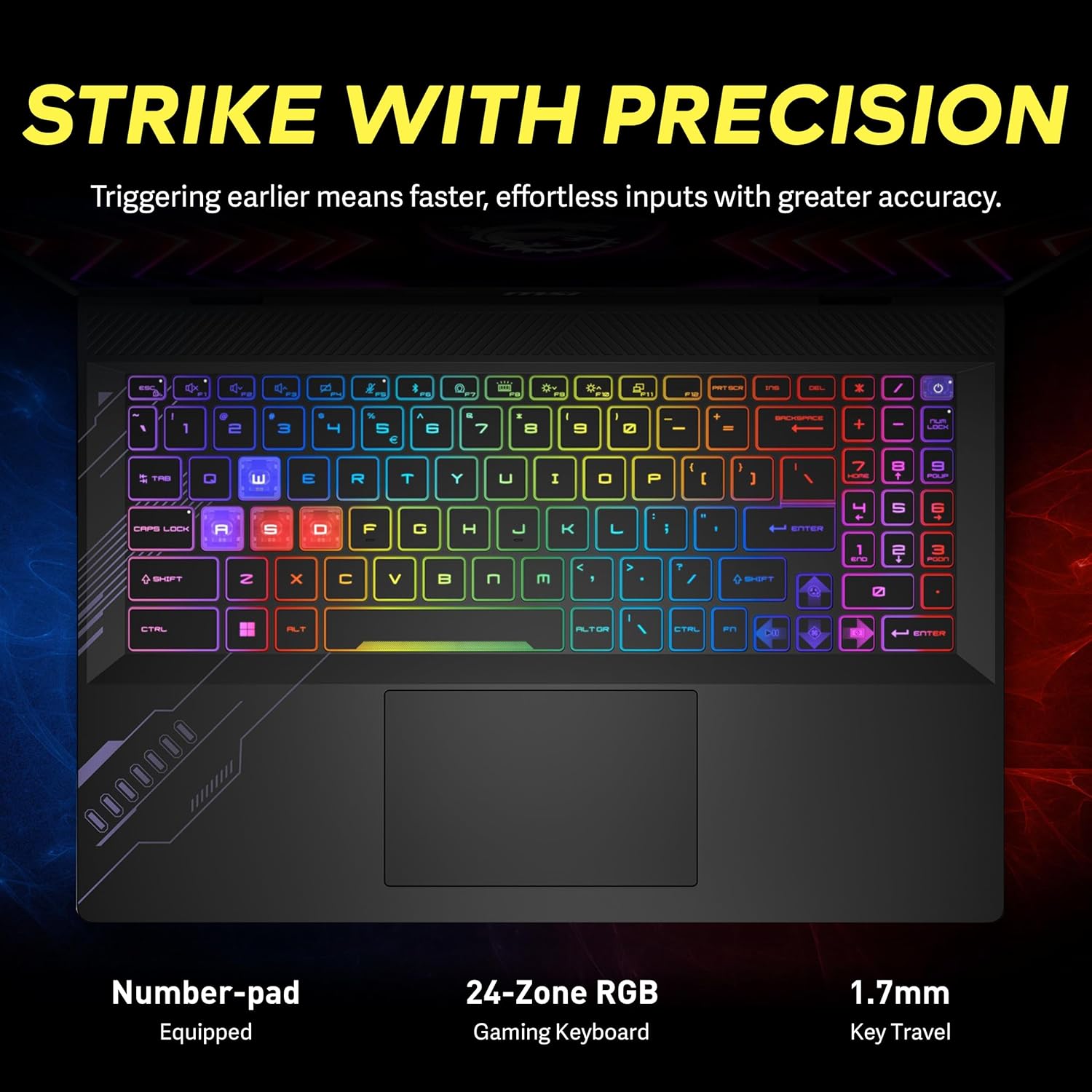 【NVIDIA GeForce RTX 4070 8GB GDDR6】 Elevate your gaming experience with powerful graphics performance that takes you to new levels of immersion.【24-Zone RGB Backlit Keyboard】Equip yourself with a desktop-style keyboard and your unique RGB backlighting style to play or work even in low-light settings with ease.