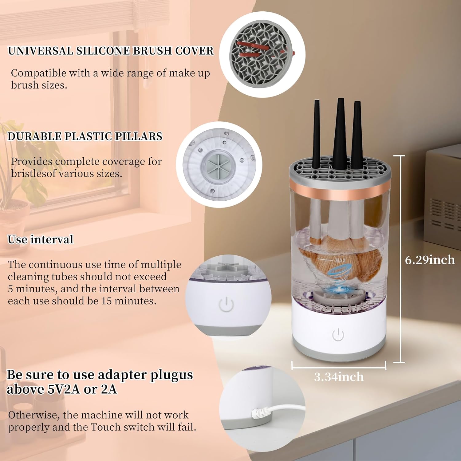 【makeup brush cleaner machine】- Featuring a large-capacity cleaner that can accommodate various sizes of makeup brushes simultaneously. Two silicone locking options expedite brush drying time, catering to the maintenance needs of different brushes. For oversized and irregularly shaped brushes, manual cleaning is recommended.