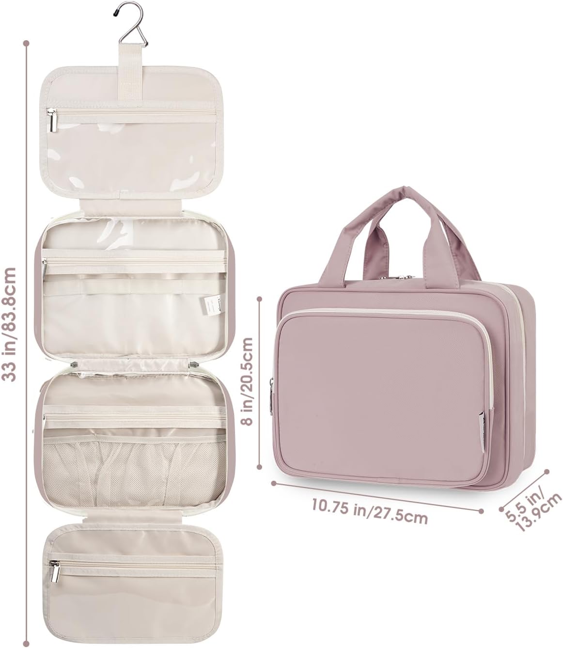 Narwey Hanging Toiletry Bag for Women Travel Makeup Bag Organizer Toiletries Bag for Travel Size Essentials Accessories Cosmetics (Dusty Rose (Medium))