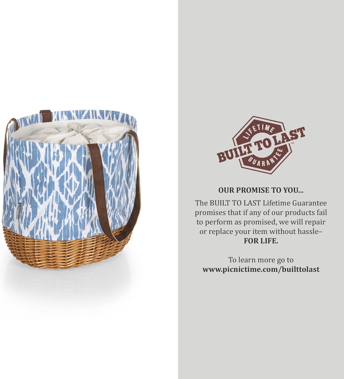 PICNIC TIME Coronado Canvas and Willow Basket Tote, Picnic Tote Bag, Beach Tote