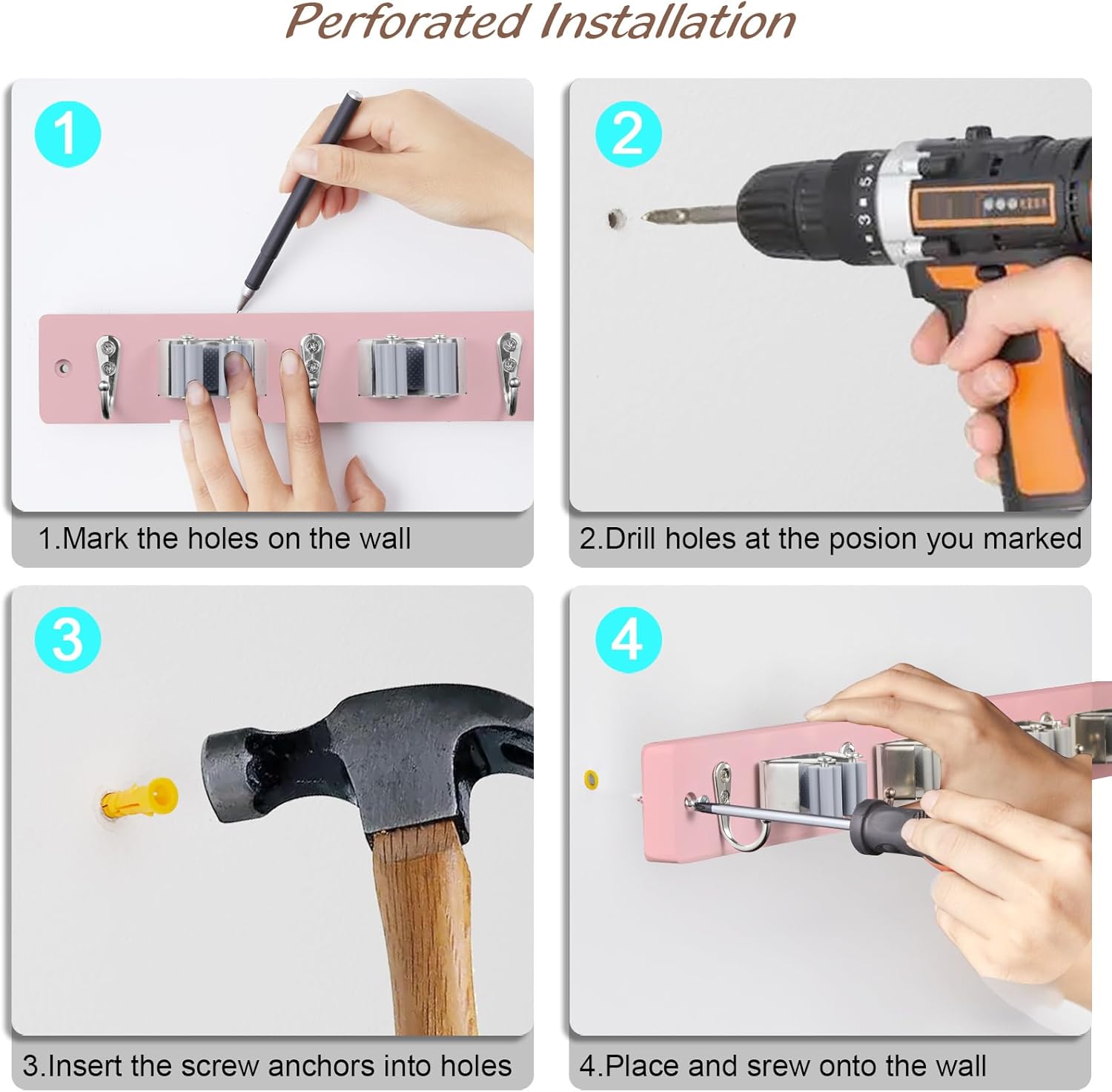 EASY INSTALLATION – You can easily mount this broom holder to most flat wall surfaces using the included mounting hardware (including drywall anchors and standard screws). Note: Please note that the distance between the mounting holes is 40.5cm/16 inch.