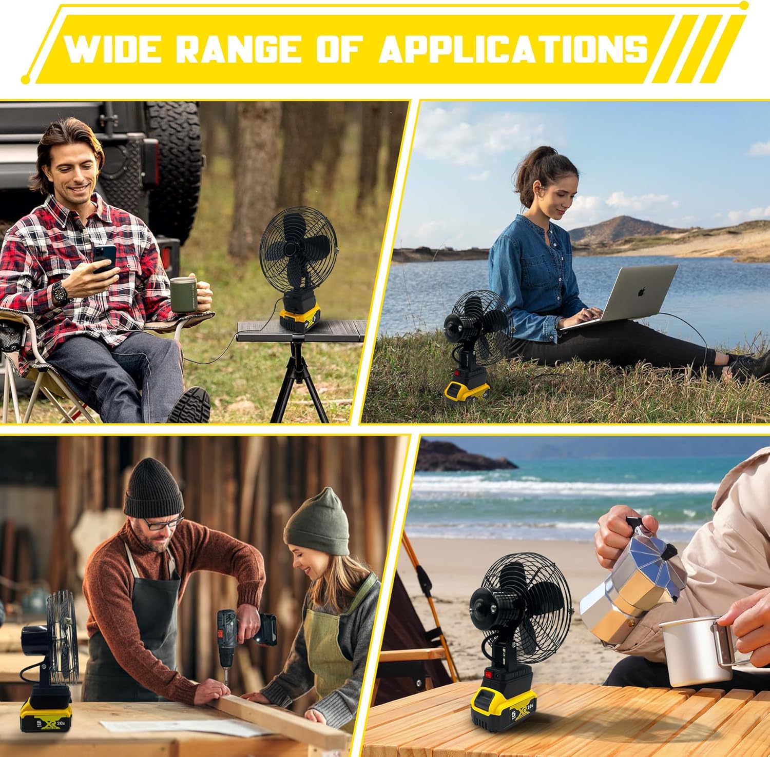 Be the first to review “Portable Camping Fan for Dewalt 20V Batteries, Cordless Battery Operated Floor Fan, Metal Jobsite Fan with AC Adapter and USB Output for Picnic Camping Tent Fishing and Workshop (Battery Not Included)”