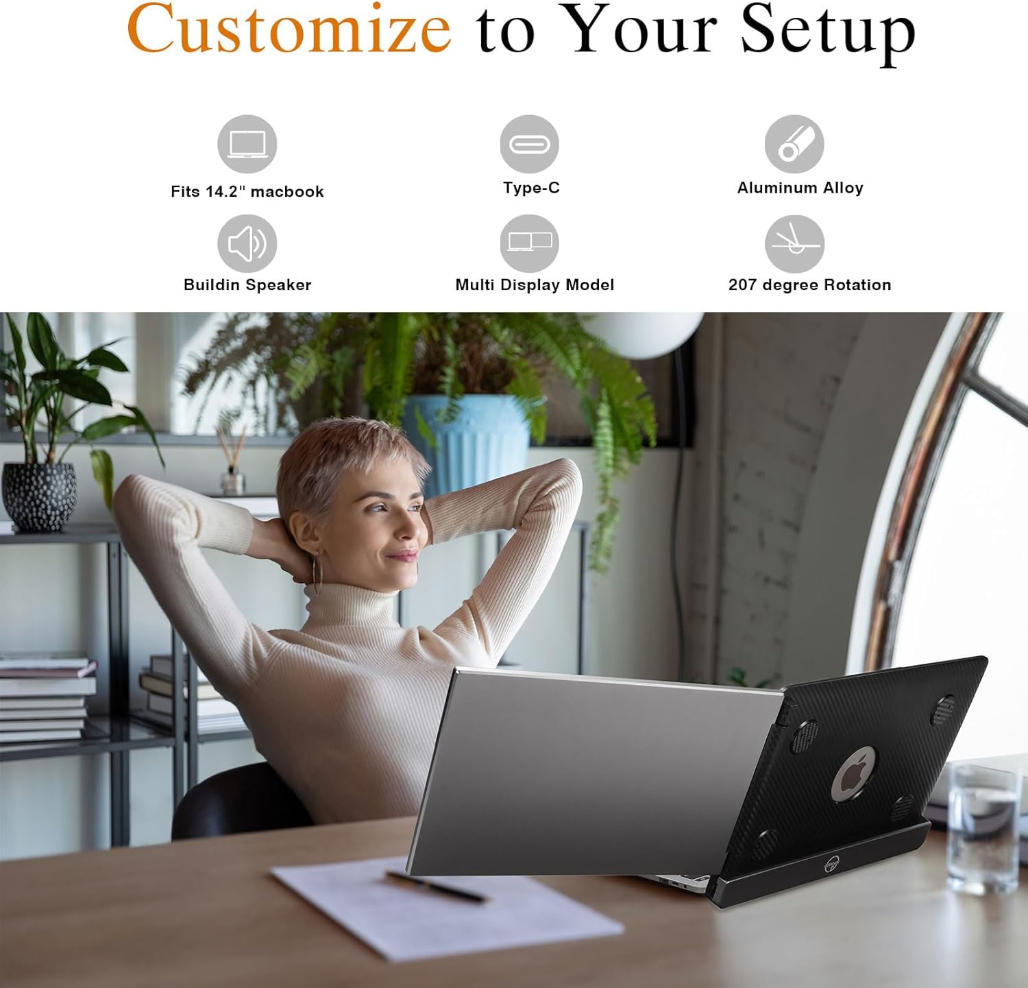 【Fusion with Your Macbook】 Especially designed for your 14.2 inch mackbook, easily buckle JoyReal dual screen extender on your macbook, and even fix it with removable nano-adhesive, which integrates the dual monitor with your macbook.