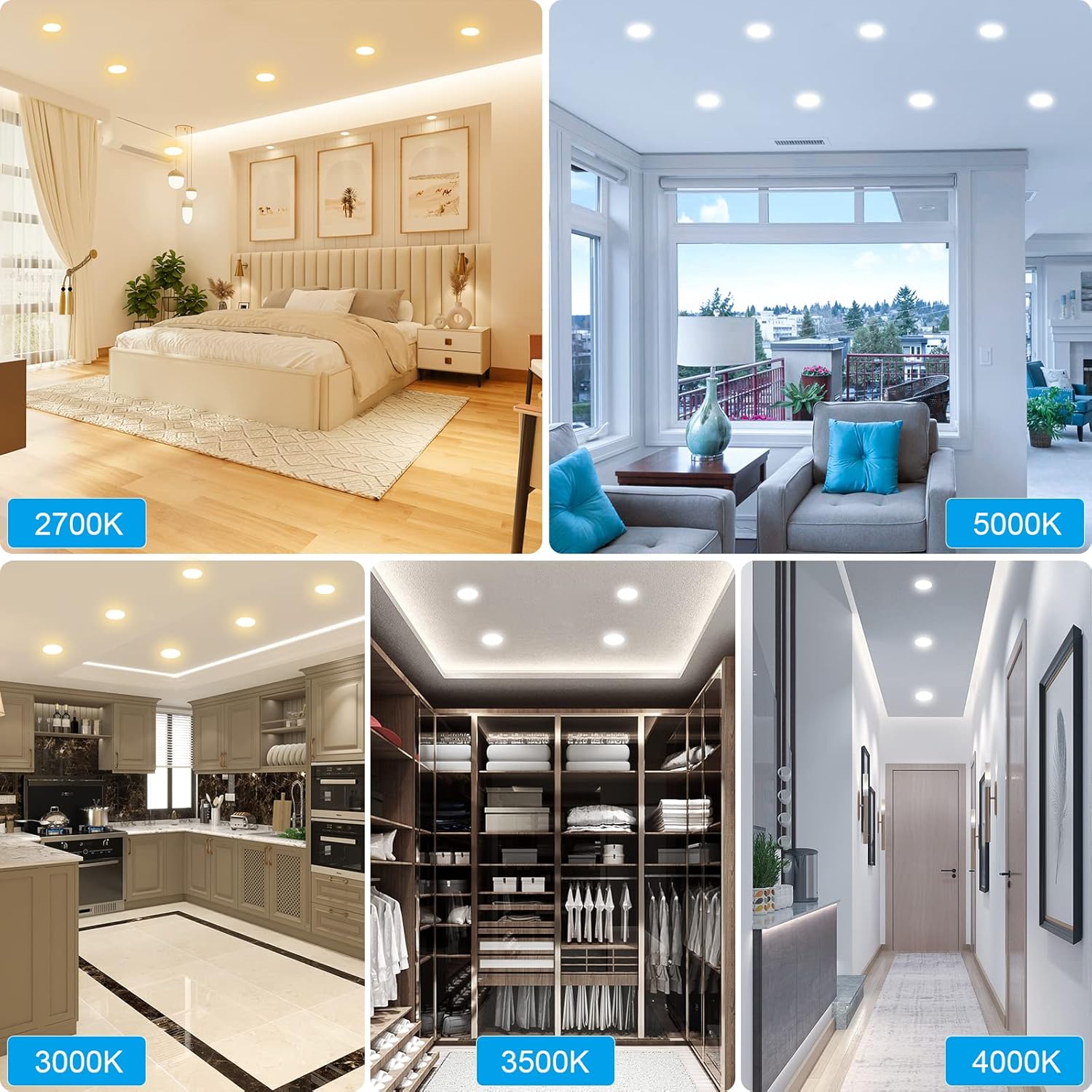 【5 CCT-in-1】: 5 color temperature(2700K, 3000K, 3500K, 4000K, 5000K) is selectable, Just slide your home dimmer switch or slide J-box.