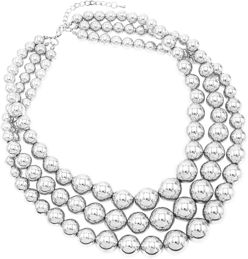 Rosemarie & Jubalee Women’s 3 Colorful Multi Strands Simulated Pearl Necklace And Earrings Jewelry Gift Set, 18″+3″ Extender