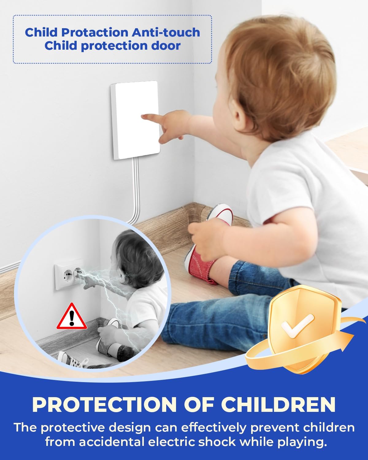 【CHILD & PET-SAFE OUTLET COVERS】Ensure the safety of your children and pets with our childproof outlet covers. Featuring a neat socket cover and slim power strip with a flat wall outlet plug, they prevent access to and chewing of dangerous electrical plugs and cords. Rest easy knowing your environment is secure with our child safety outlet covers.