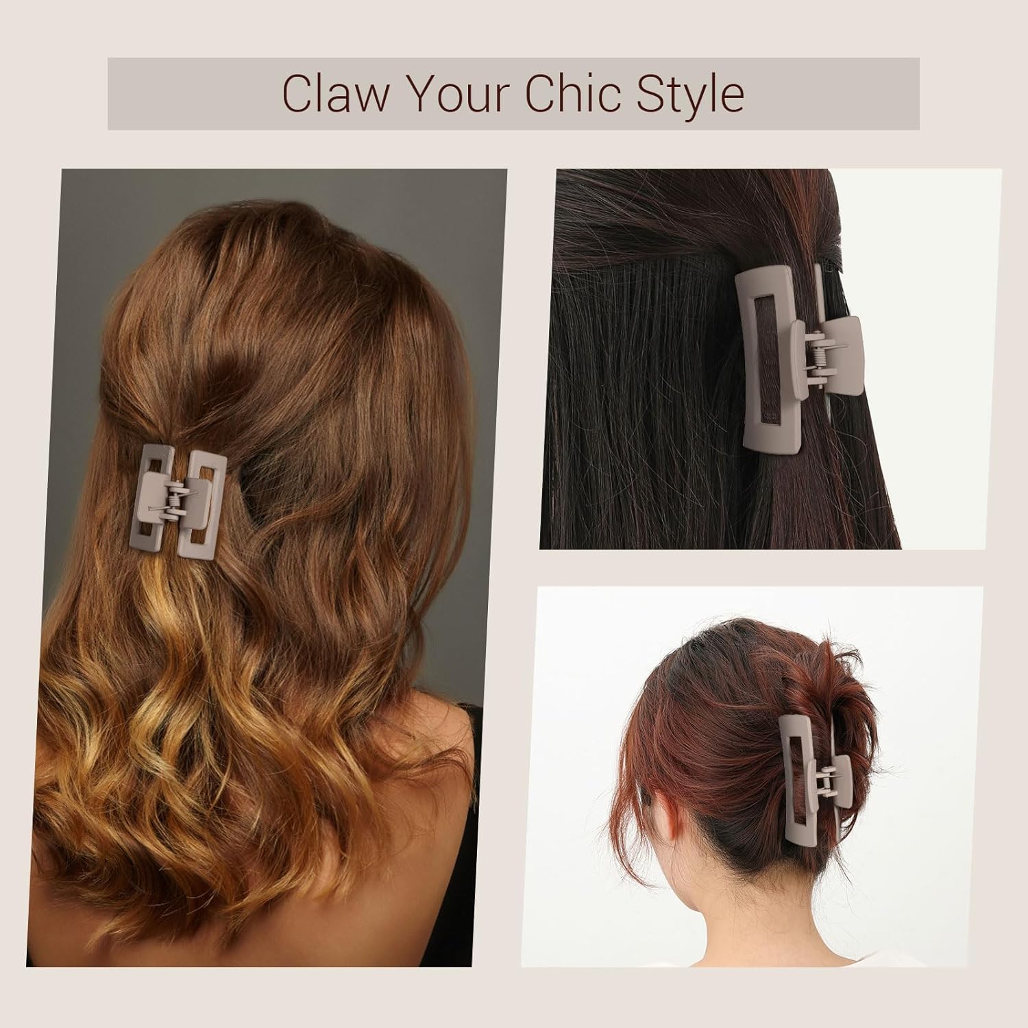 3 Pcs Hair Claw Clips : 3 Different Sizes for different hair volume or hair styles.