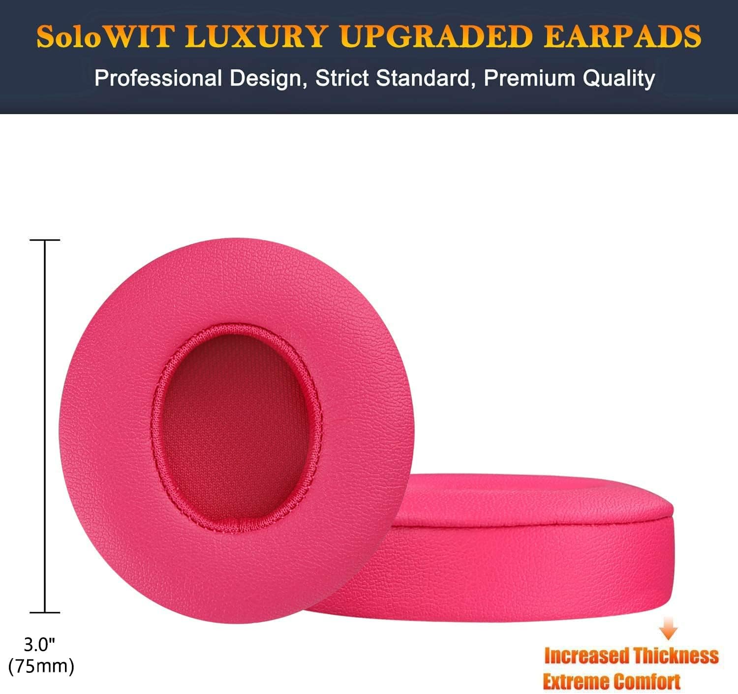 SoloWIT Earpads Cushions Replacement for Beats Solo 2 & Solo 3 Wireless On-Ear Headphones, Solo2 Solo3 Ear Pads with Soft Protein Leather, Added Thickness – (Pink)