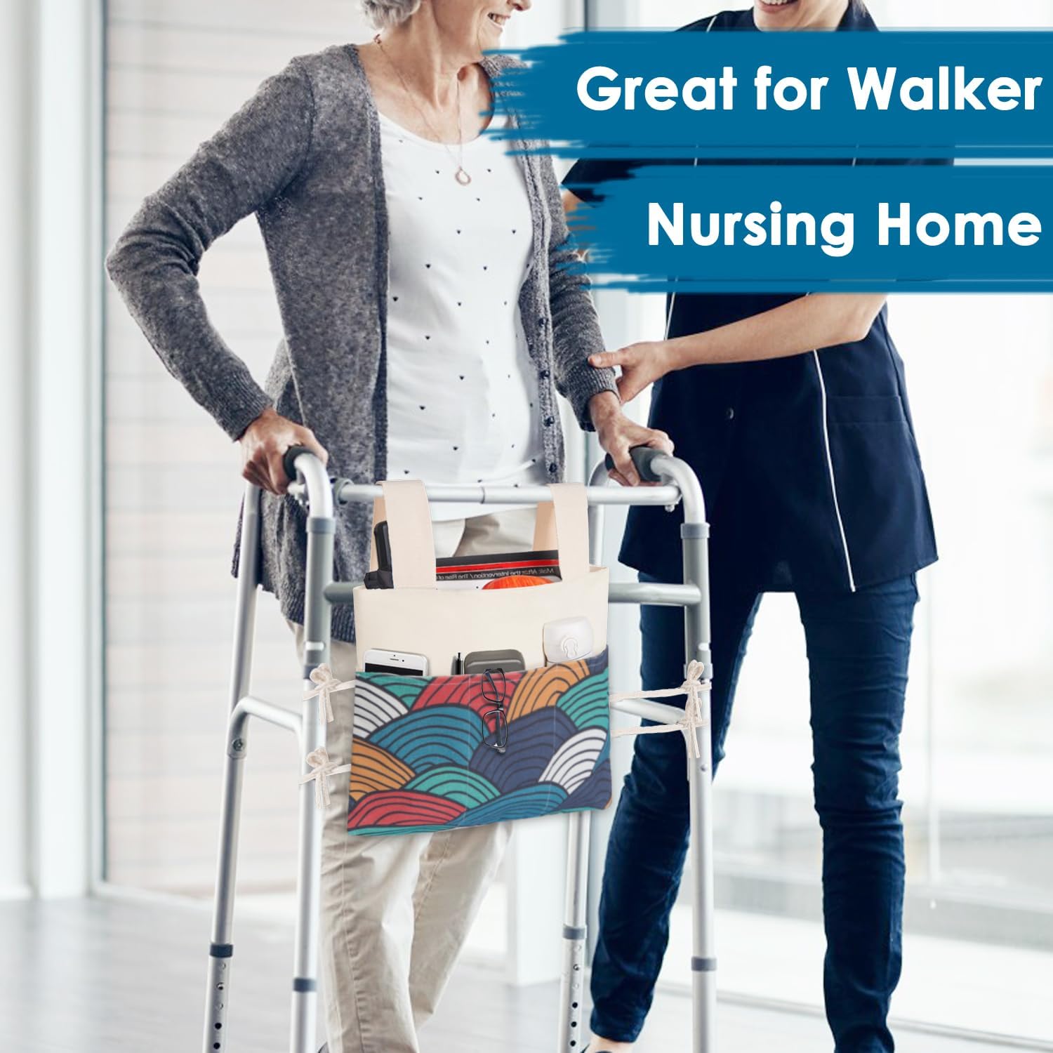 Ease of Installation: The walker pouch can easily attached to the walker with straps on the top of bag. We design the much wider velcro on the straps and two ropes on both sides of the bag to make sure the bag can hold things stable and sturdy when you moving.