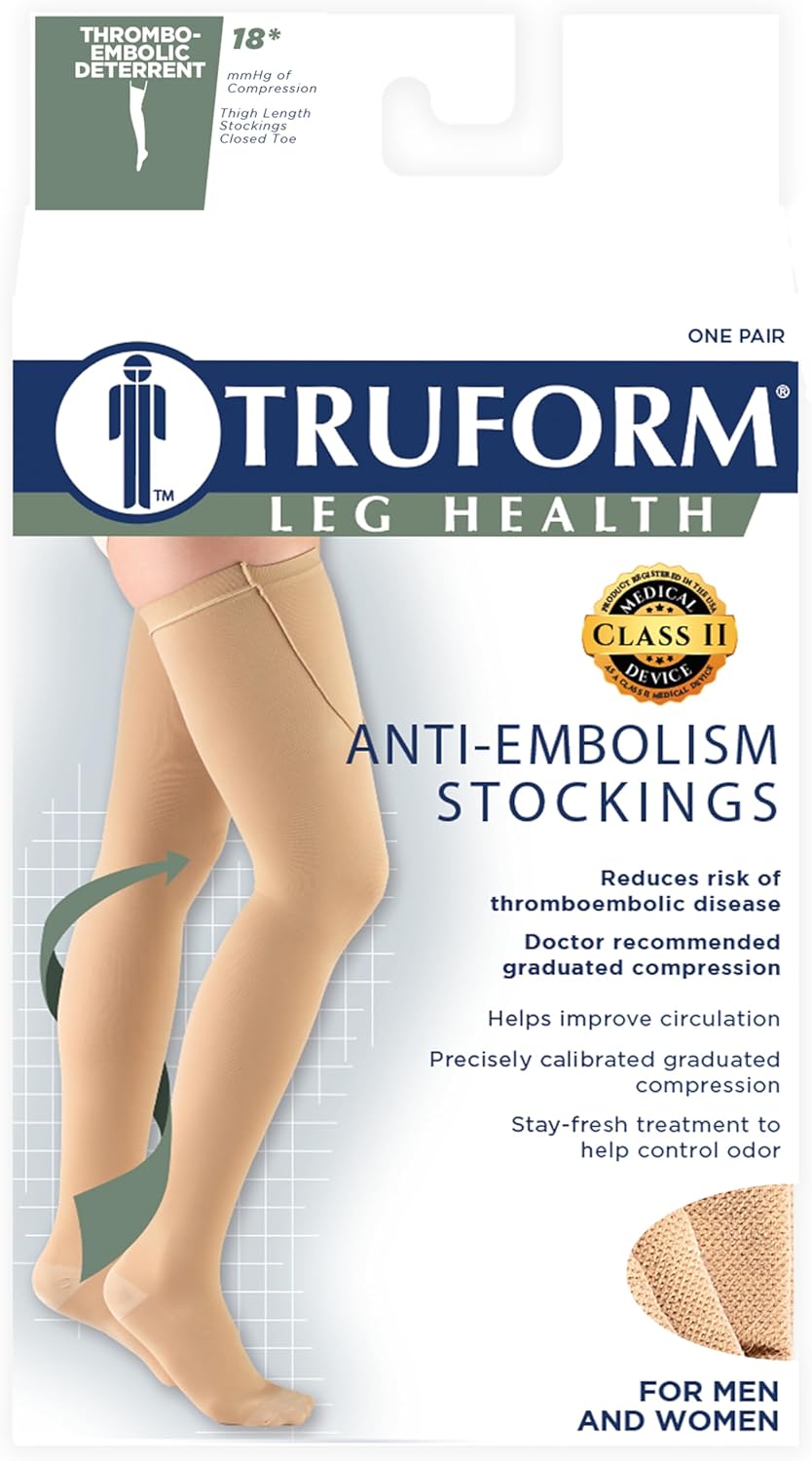 Be the first to review “Truform Anti Embolism Stockings, Thigh High Post Surgery Recovery Hospital Style, 18 mmHg Compression for Men and Women, Full Length Ted Hose, Closed Toe, White, Large”
