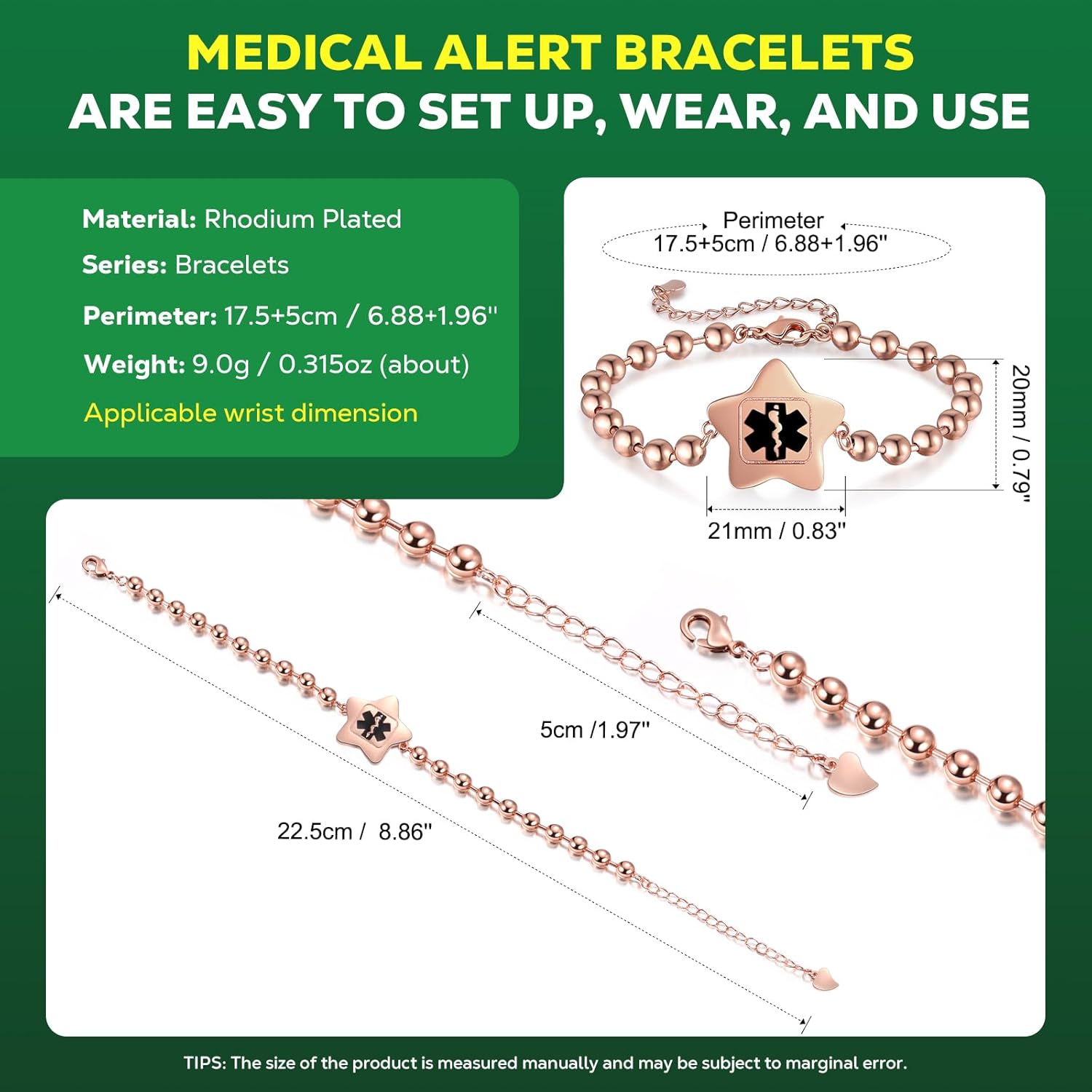 THELUCKYTAG Medical Bracelets for Men & Women with QR Code – PVC Wristband, Fits Wrists Up To 9 inches – More Space Custom Adjustable Sport Emergency Medical Alert ID Bracelets Information Anytime, Anywhere