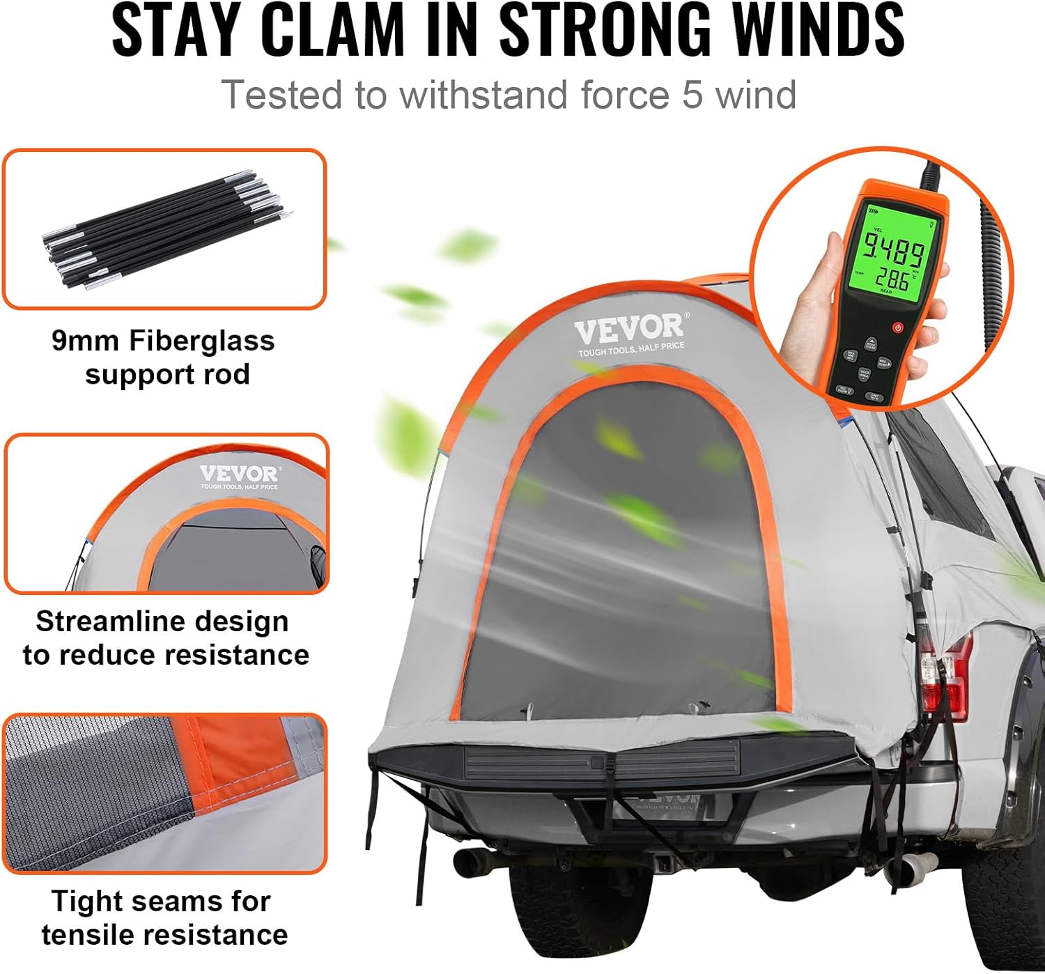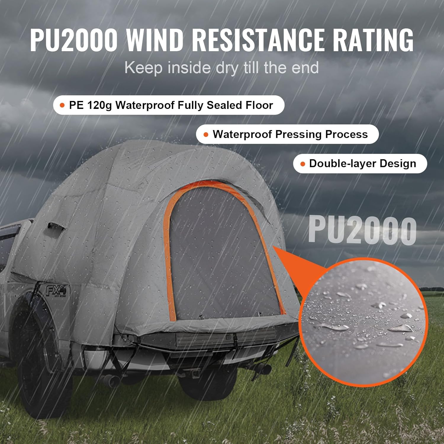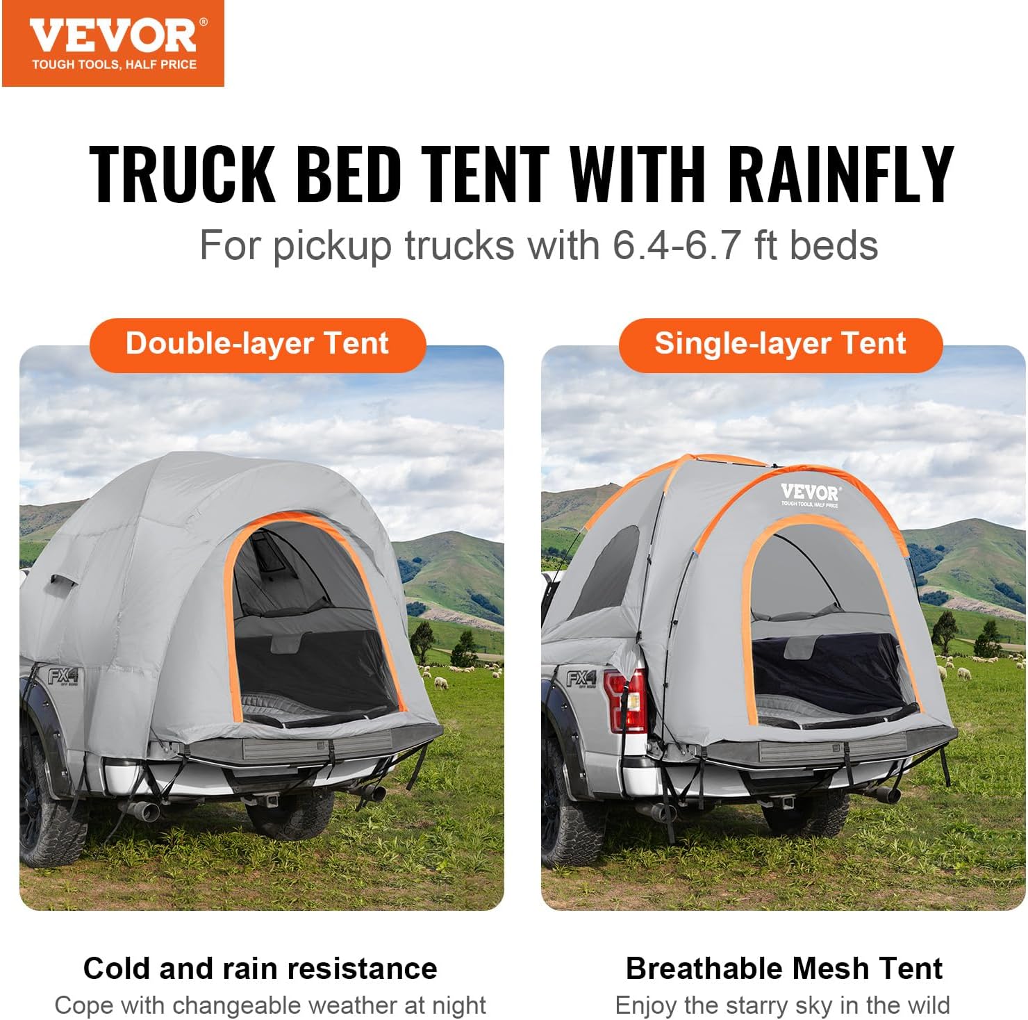 VEVOR Truck Bed Tent, SUV/Truck Tent with Carry Bag, Waterproof PU2000mm Double Layer Truck Tent for Camping, Pickup Tent Accommodate 2-3 Person, SUV Tent Accommodate 6-8 Person