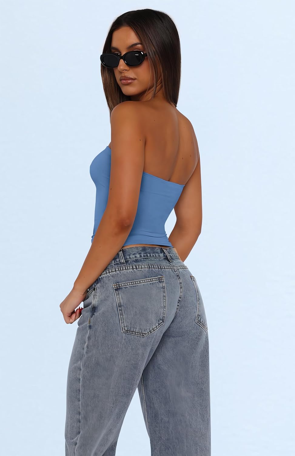 WIHOLL 3 Pack Tube Tops for Women Slim Fit Crop Tops Going Out Strapless Tank Tops Bandeau Summer Outfits 2025 Y2K Clothes