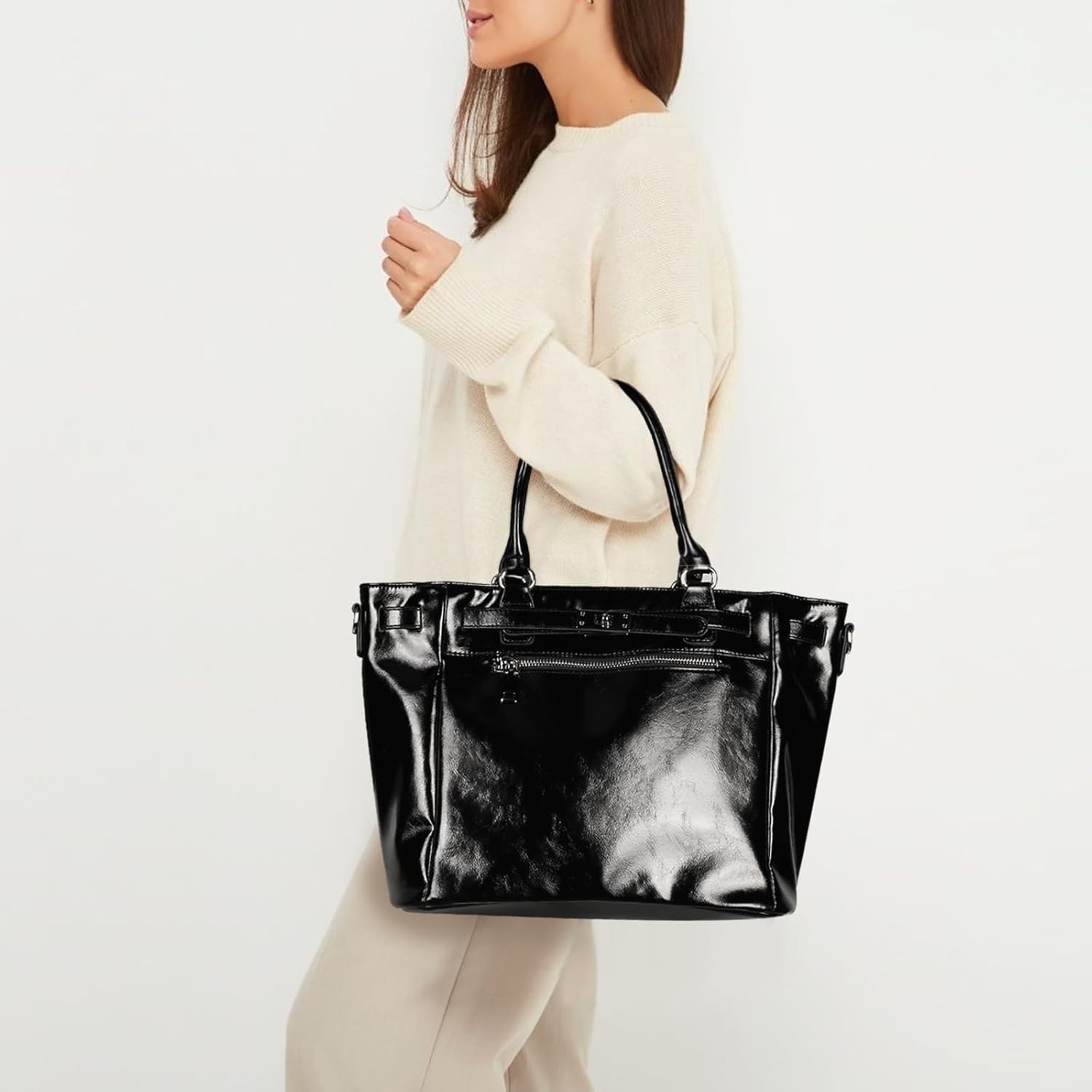 Women Tote Bags Faux Leather Top-handle Bag Work Bag Designer Tote Handbags Soft Glossy Leather Shoulder Satchel Bag